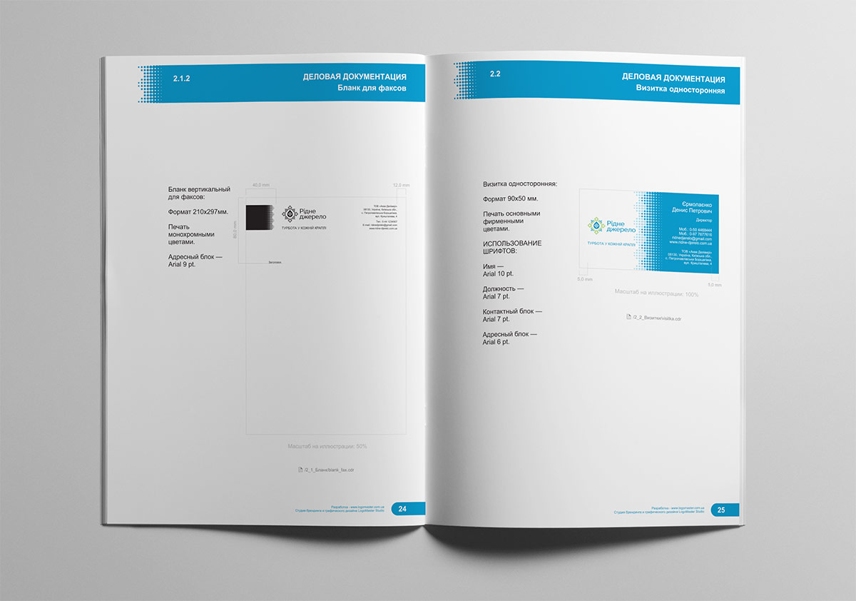 Шрифтове написання назви “Рідне джерело” розроблено дизайнерами нашої студії та виконане у строгому стилі.
