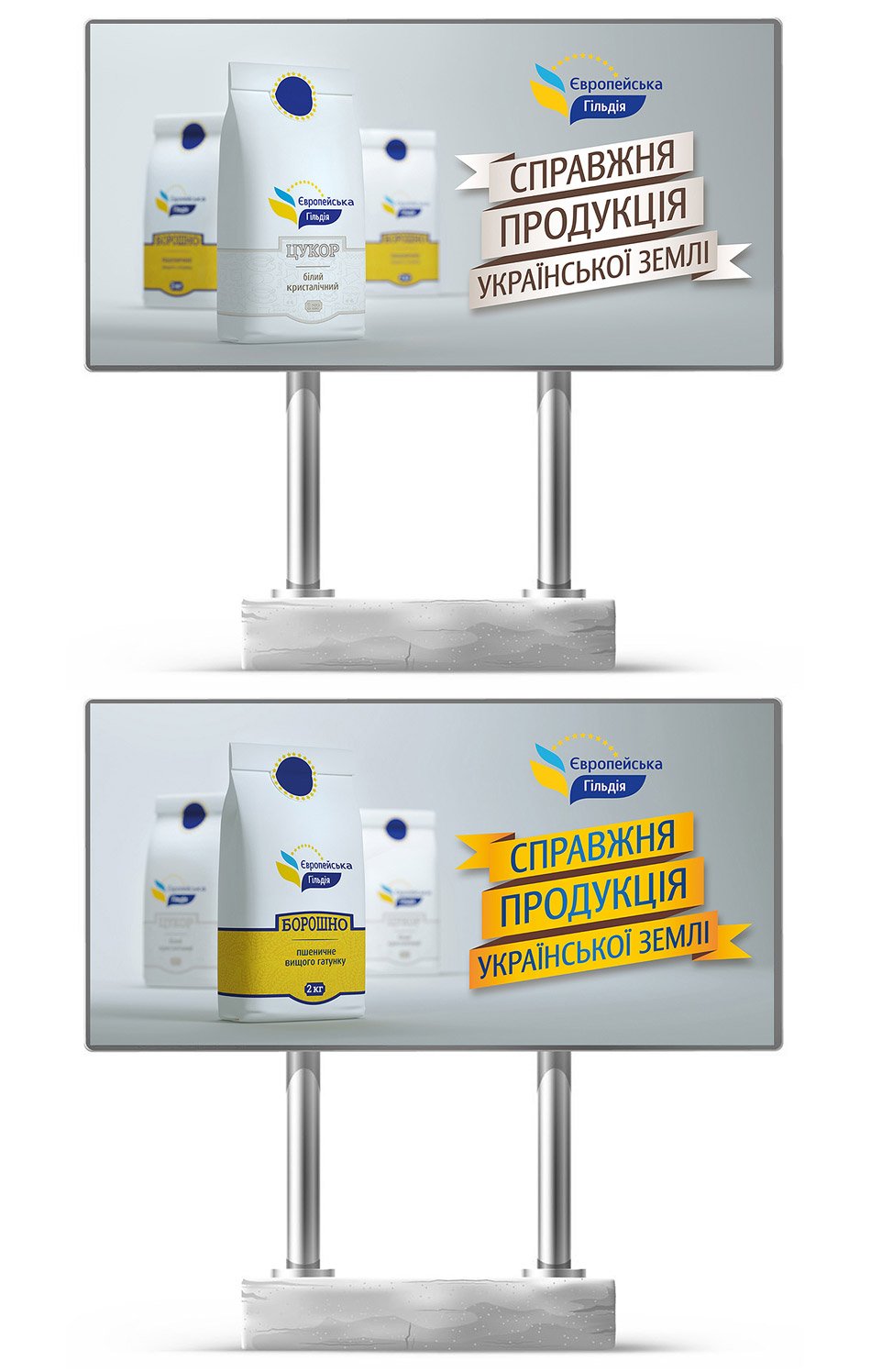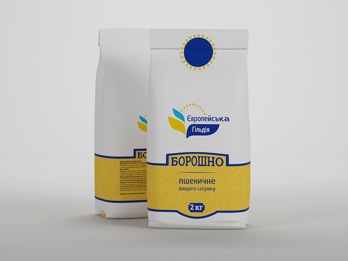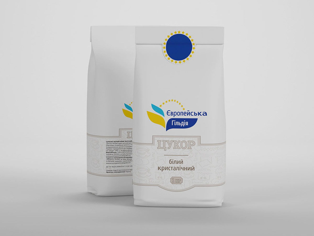 З метою формування сприятливого образу лінійки продуктів TM «Європейська Гільдія», для кожного виду упаковки було розроблено привабливий патерн (ілюстрація), який детально розповідає покупцеві про специфіку продукту та передає його унікальний характер у новому для українського ринку форматі (для цукру – це кухоль чаю, печиво, банку варення, кекси; для борошна – це колоски пшениці). Дизайн розроблено з урахуванням функціональних особливостей товару. Кожна упаковка має дуже зручний клапан (наклейку) у верхній частині для того, щоб можна було зручно закрити упаковку.