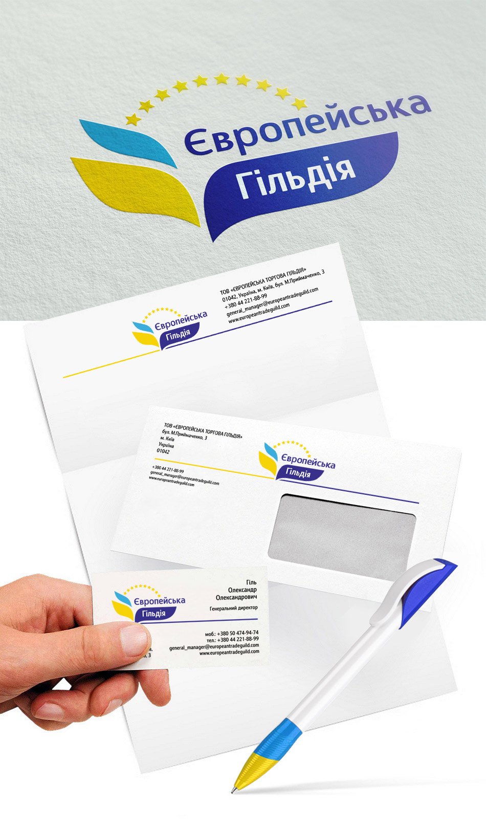 До нашої студії звернулися за розробкою логотипу, фірмового стилю та упаковки для продукції. На першому етапі роботи було створено логотип, який повністю відповідає своїй назві (зірочки Європейського союзу), та відображає аграрну тематику – листочки (виконані у національних кольорах прапора України).