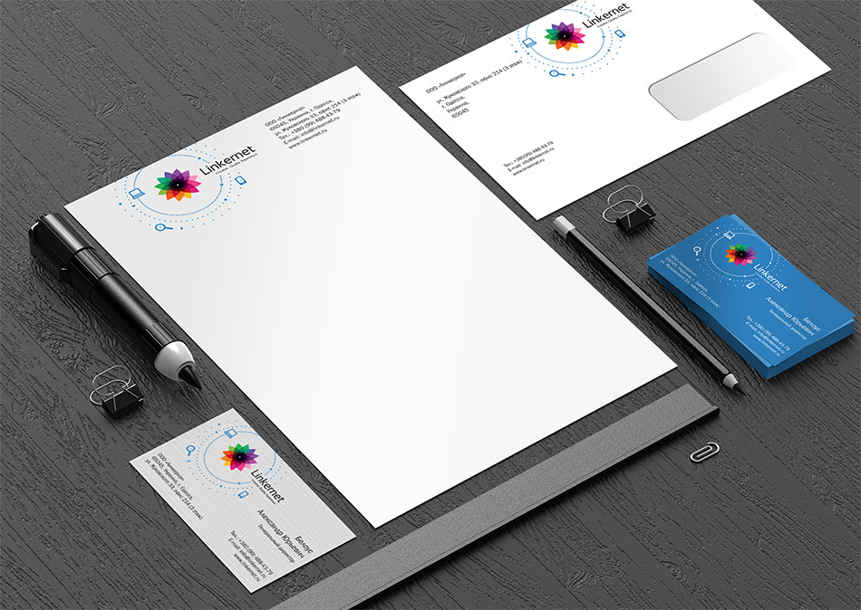 З урахуванням того, що основні замовники послуг компанії «Linkernet» – керівники інтернет-компаній (тобто бізнесмени), фірмовий стиль виконаний у «суворій» формі, але з чітким розумінням того, що ця строгість має відтінок інтернет-бізнесу, а не юридичної фірми чи фінансової установи. Це передано за допомогою комп'ютера, смартфона, збільшувальної лупи, стрілок та кіл, які мають замкнуту структуру. Розроблені елементи фірмового стилю на пряму відображають специфіку роботи, а саме: побудову маси посилань для інтернет-проектів.