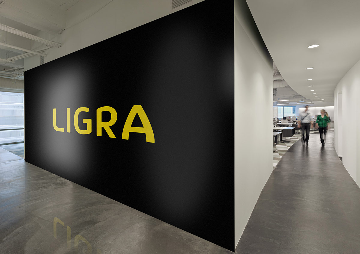 Шрифтове написання назви “LIGRA” розроблено дизайнерами нашої студії та виконане у строгому стилі.