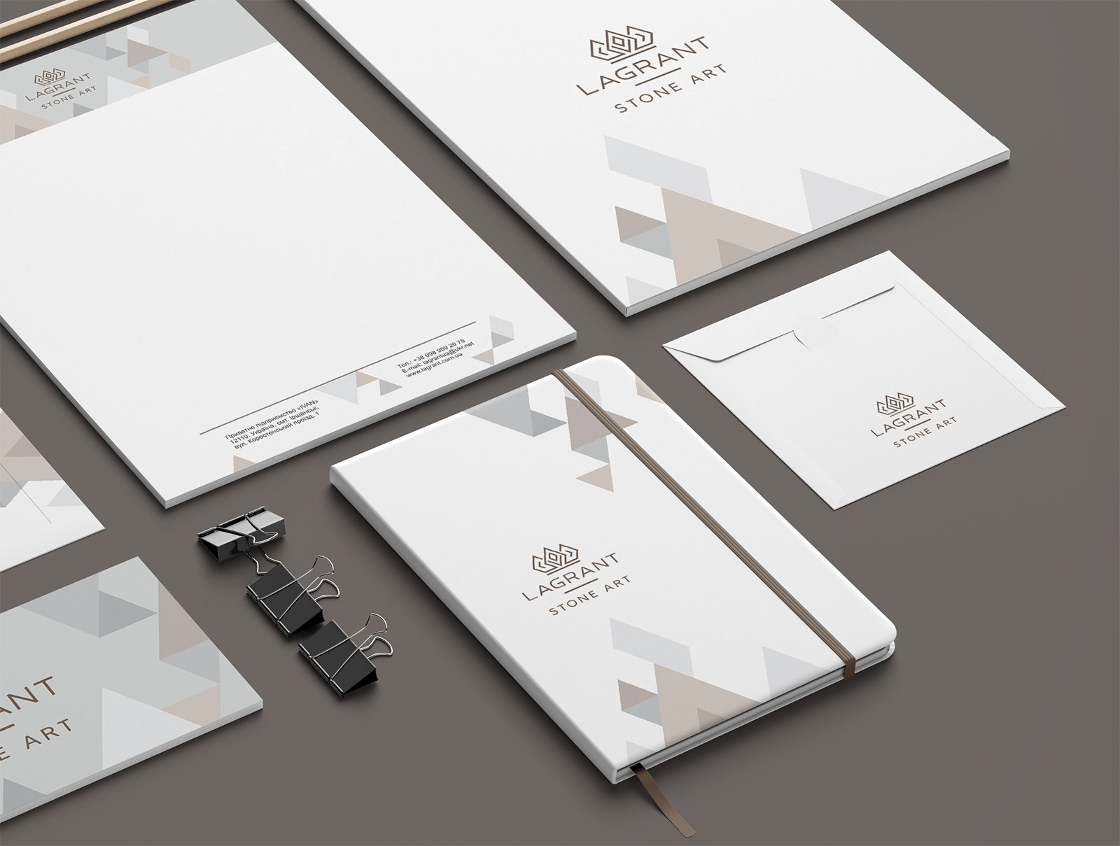 Шрифтове написання назви “LAGRANT” розроблено дизайнерами нашої студії та виконане у строгому стилі.