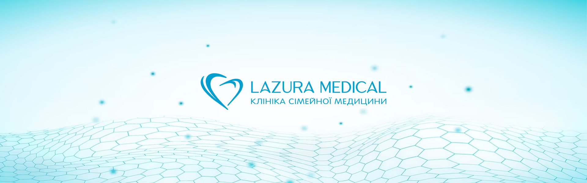 Шрифтове написання назви “LAZURA” розроблено дизайнерами нашої студії та виконане у строгому стилі. Для розшифровки діяльності було прийнято використати у логотипі дескриптор “клініка сімейної медицини”.