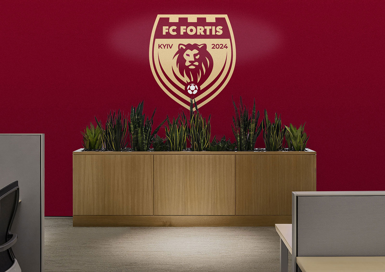 Назва клубу “FC FORTIS” виконана в індивідуальному авторському написанні, спеціально розробленому дизайнерами нашої студії. Шрифт відрізняється чіткістю, лаконічністю та динамікою, що робить його не тільки естетично привабливим, але й легко читається у різних форматах.