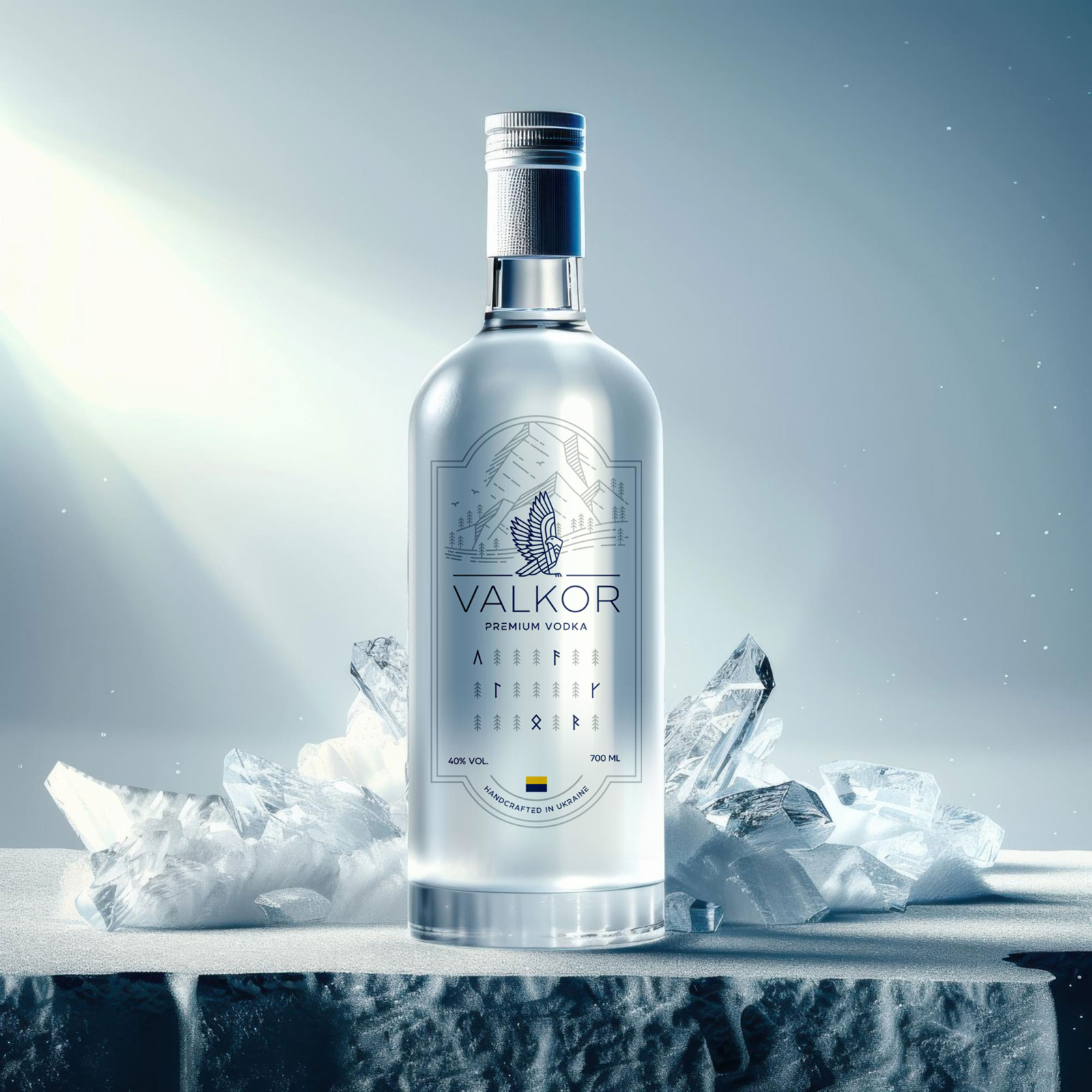 VALKOR — це не просто алкогольний напій. Це бренд, створений під впливом скандинавської естетики, сили гір та духу свободи. Дизайн етикетки передає філософію бренду: чистоту, витримку та велич природних стихій.