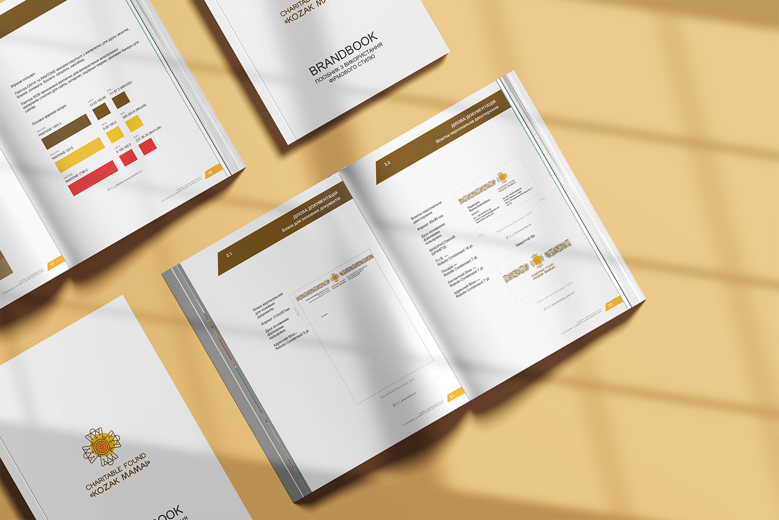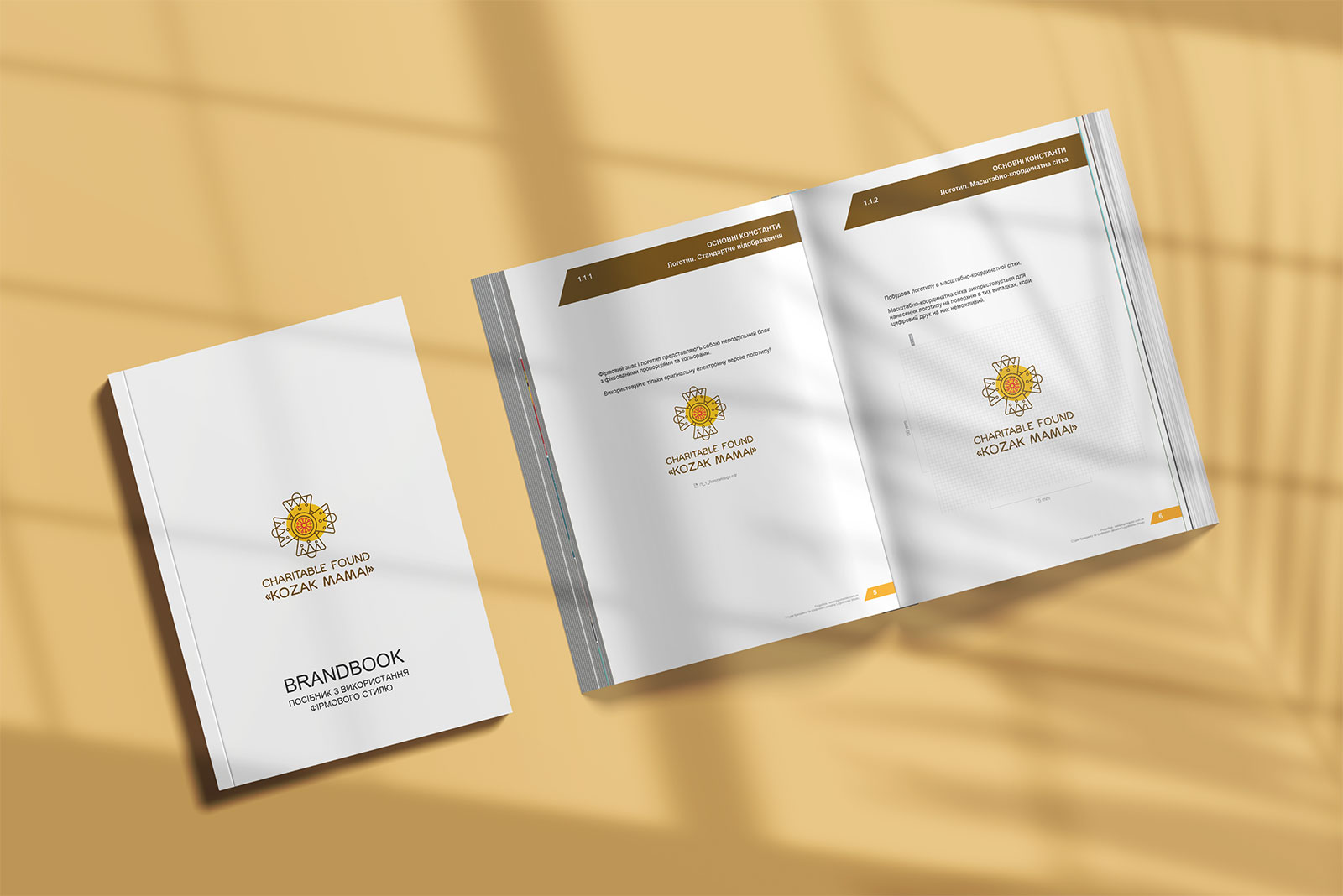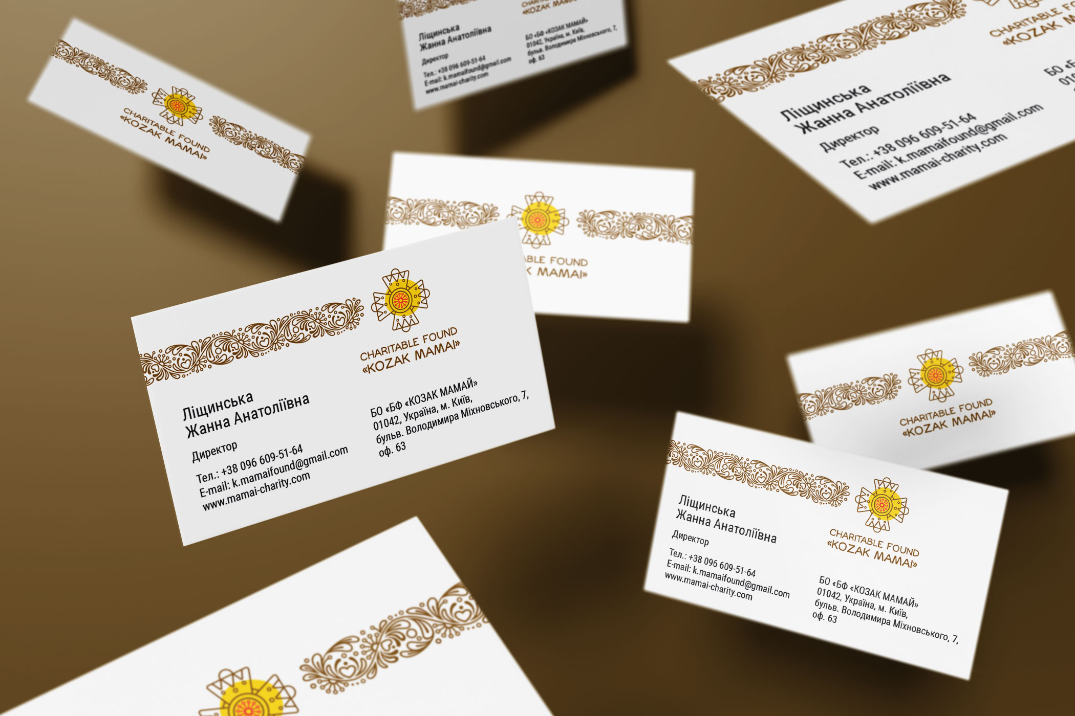 Шрифтове написання назви "KOZAK MAMAI" було створено дизайнерами нашої студії спеціально для цього проєкту. Його виконано в стриманому, впевненому стилі, який підкреслює серйозність місії Фонду. Для чіткого розуміння напряму діяльності, до логотипа було додано дескриптор “CHARITABLE FUND” — як пояснення та водночас офіційне позиціонування Фонду на міжнародному рівні.