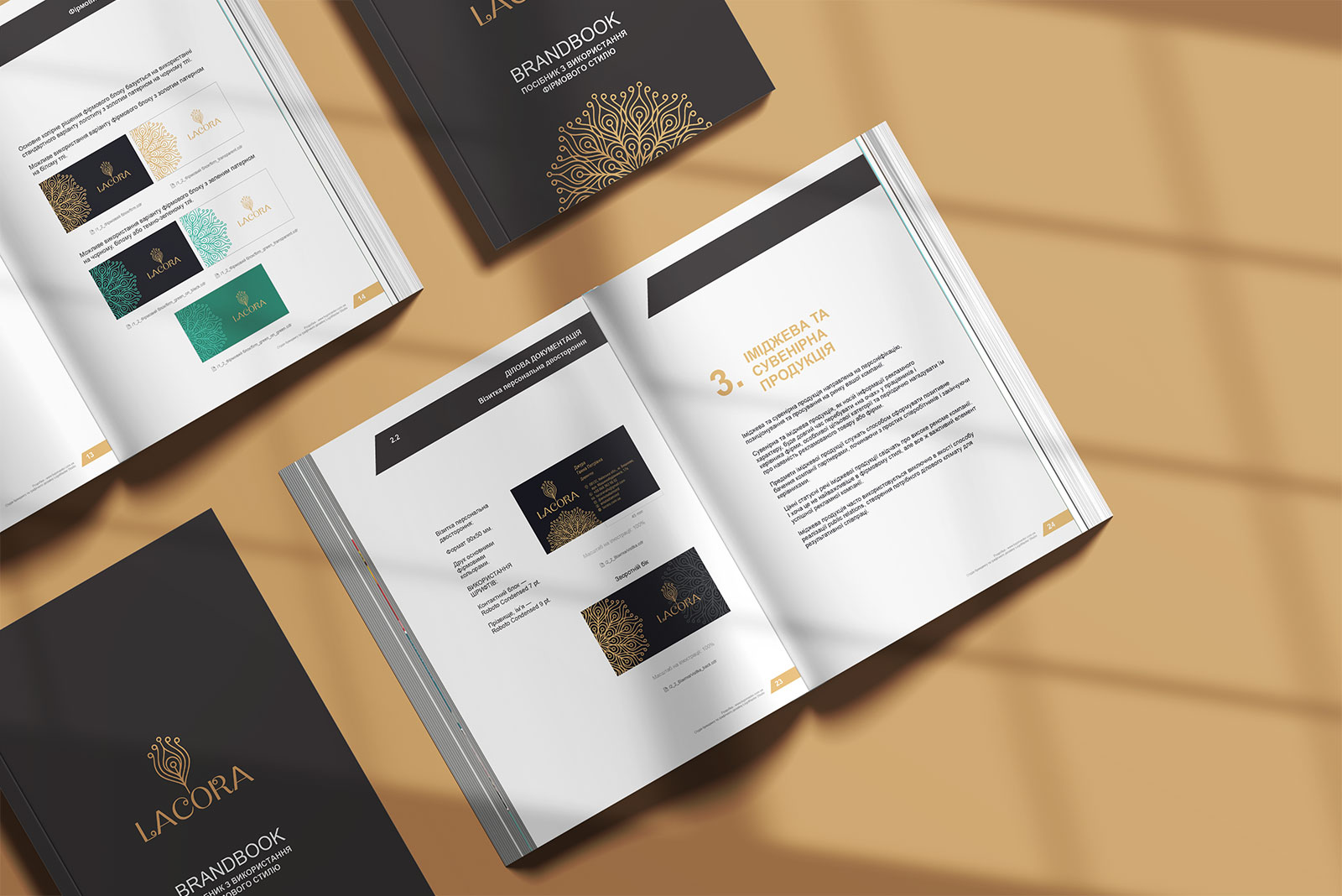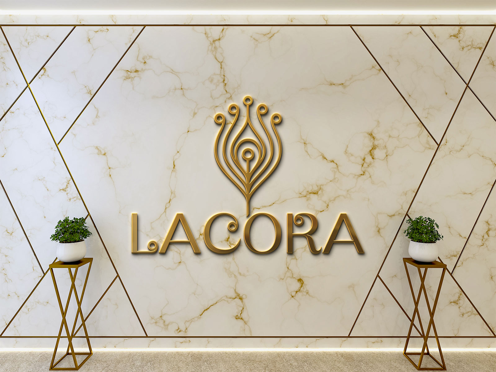У результаті глибокого аналізу та обговорення концепцій було затверджено логотип у вигляді стилізованого пера павича. Перо павича — символ витонченості, краси, благородства та індивідуальності. Воно не лише асоціюється з естетикою та доглядом, а й передає ідею яскравого самовираження, яке клієнти бренду LACORA досягають за допомогою професійного манікюру.