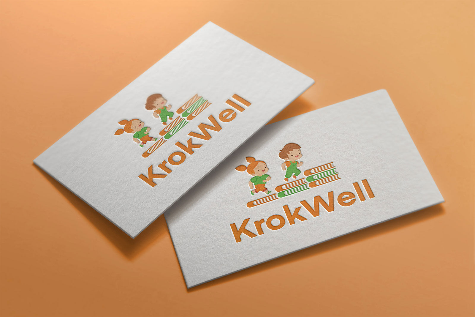 Шрифтове написання KrokWell, розроблене дизайнерами студії, виконане в об'ємному стилі, що надає логотипу сучасний і динамічний вигляд.