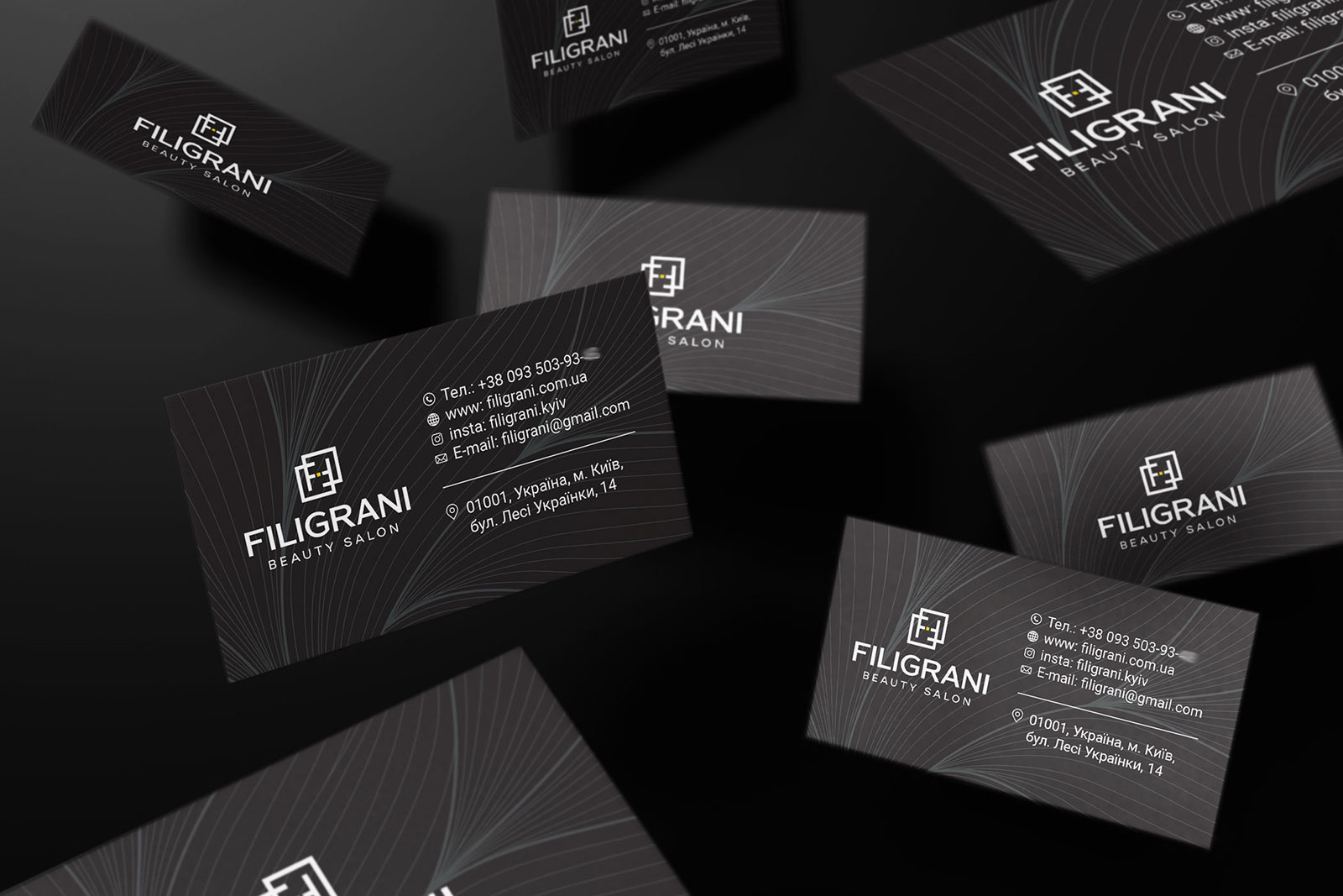 Фірмове зображення FILIGRANI, створене дизайнерами студії, витримане в сучасному мінімалістичному стилі. Чіткі лінії, вивірені пропорції та лаконічність форм транслюють ключові цінності бренду: надійність, стабільність, професіоналізм та впевненість.