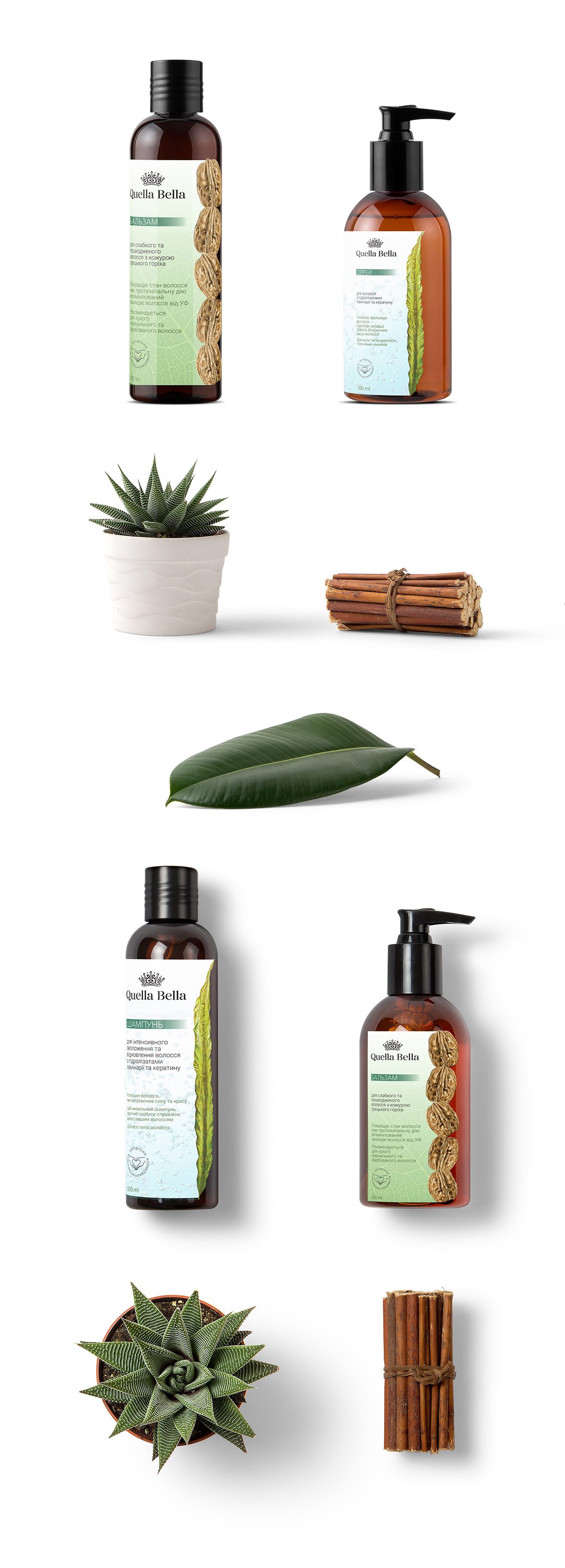 Дизайн этикетки бальзама, шампуня, спрея, маски был разработан в ярком, современном и жизнерадостном стиле. В качестве фирменного стиля были использованы натуральные элементы на фоне этикетки (структура листика, капли и пузырьки воды), а так же с правой стороны были добавлены рисунки растений и плодов, входящих в состав: ламинария, орех и т.д. Созданный дизайн будет способствовать укреплению бренда на международном уровне, отражая безупречное качество продукта.