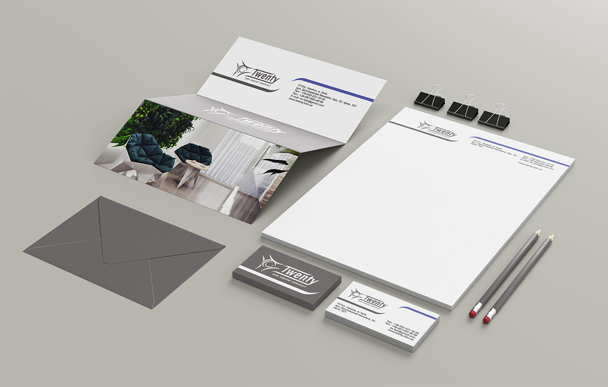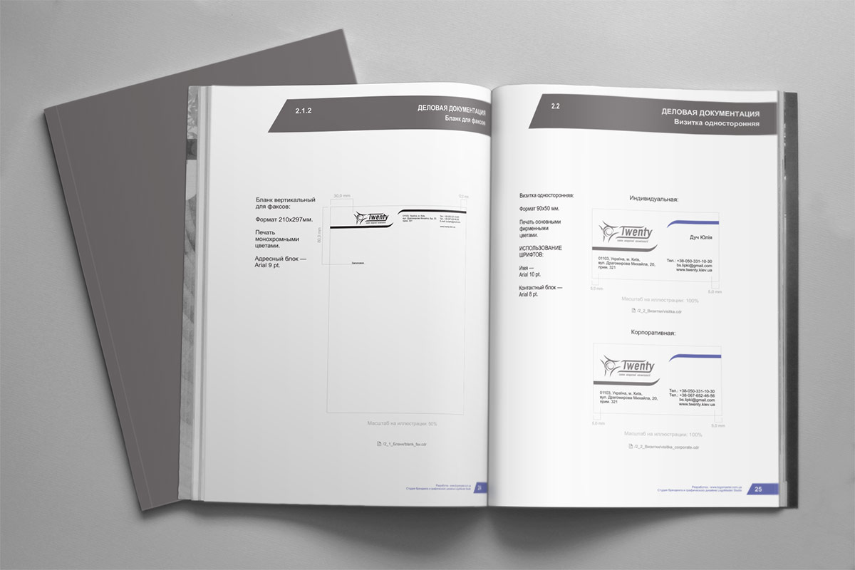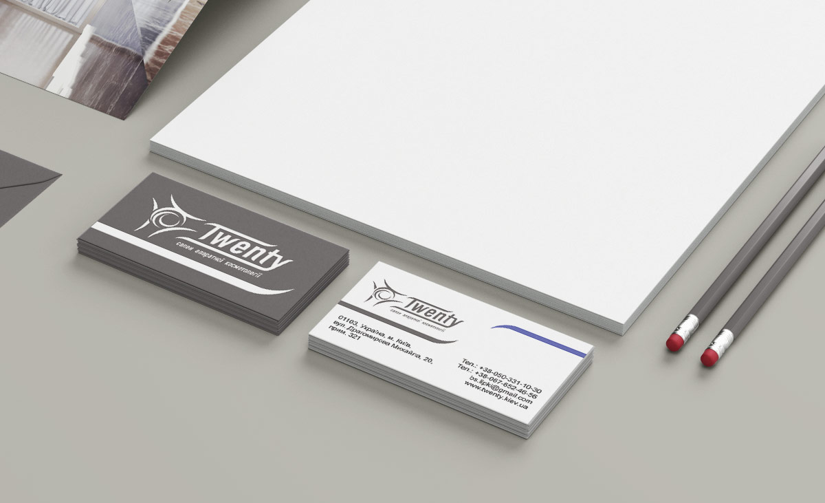 Шрифтовое написание названия “Twenty” разработано дизайнерами нашей студии и выполнено в строгом стиле.