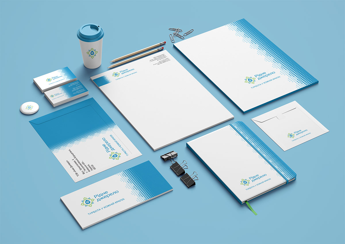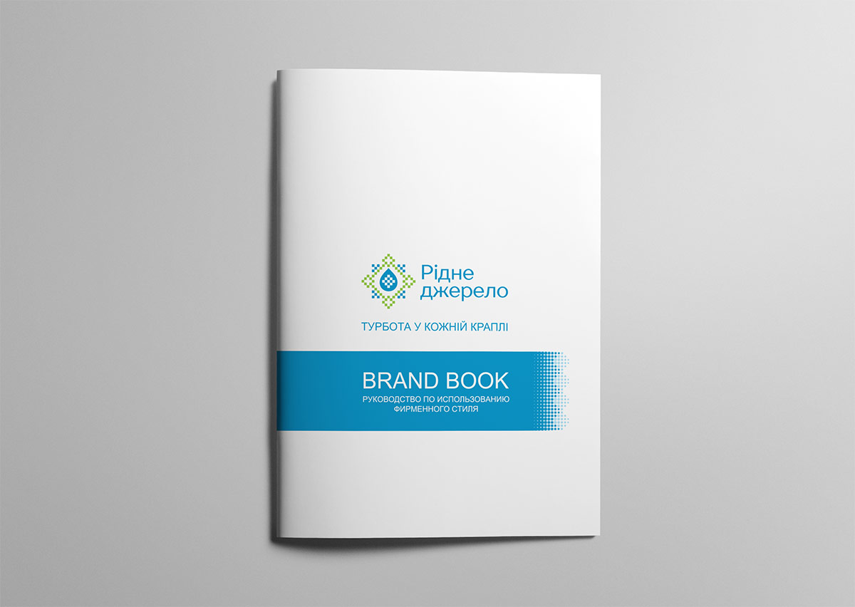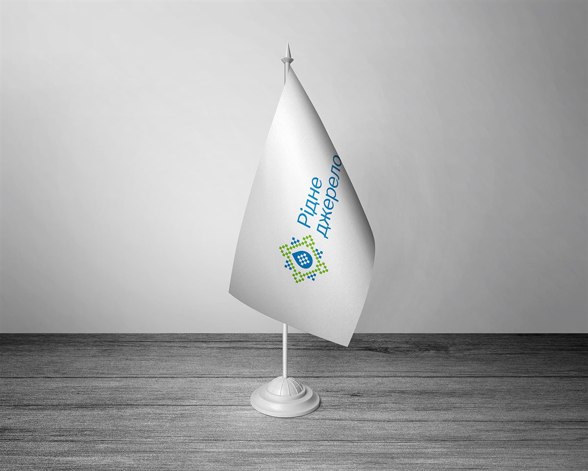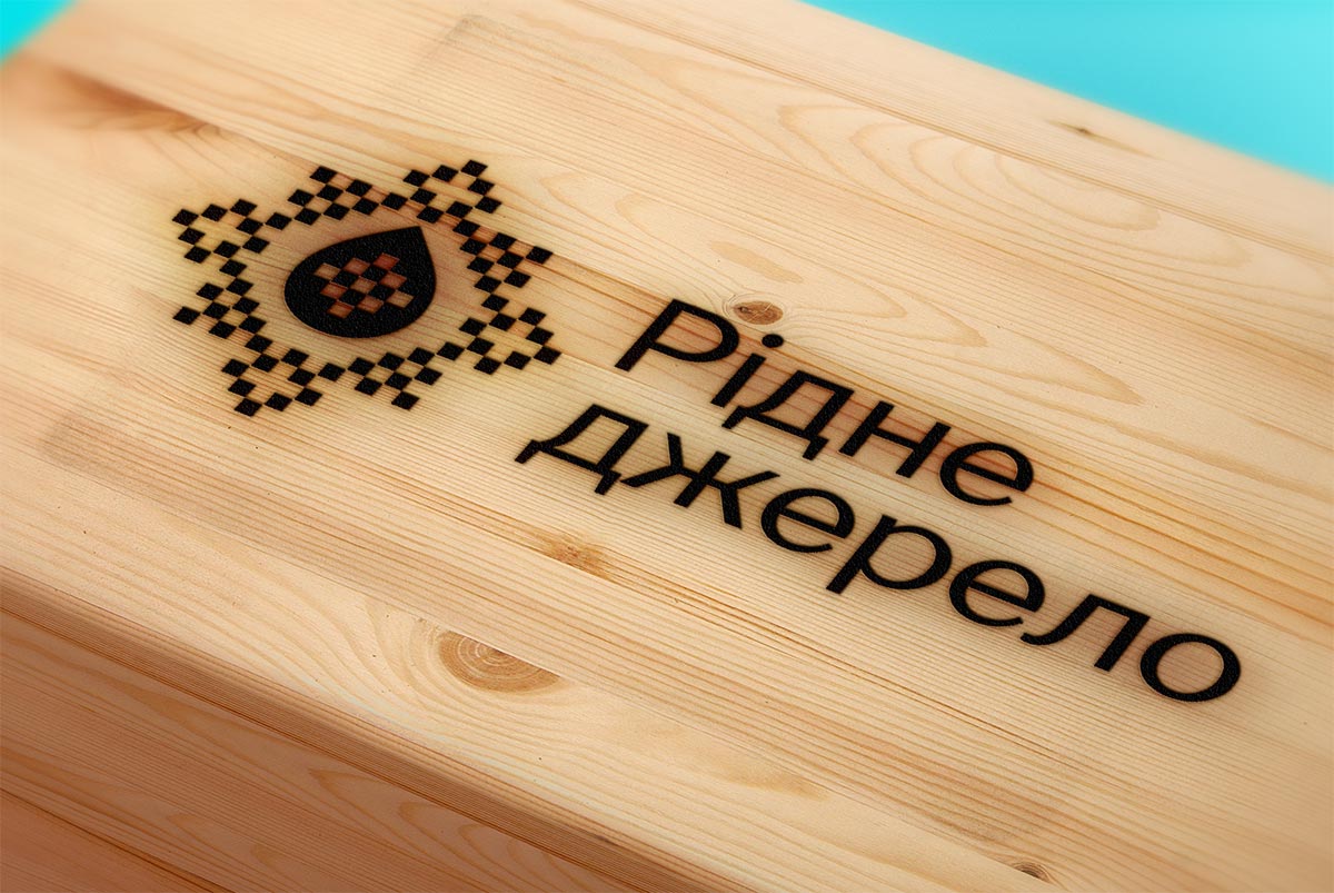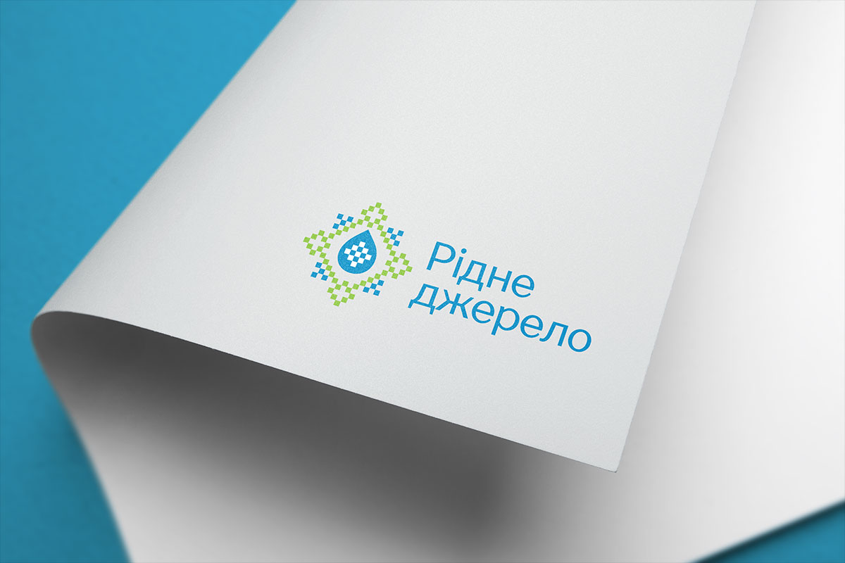 Шрифтовое написание названия “Рідне джерело” разработано дизайнерами нашей студии и выполнено в строгом стиле.