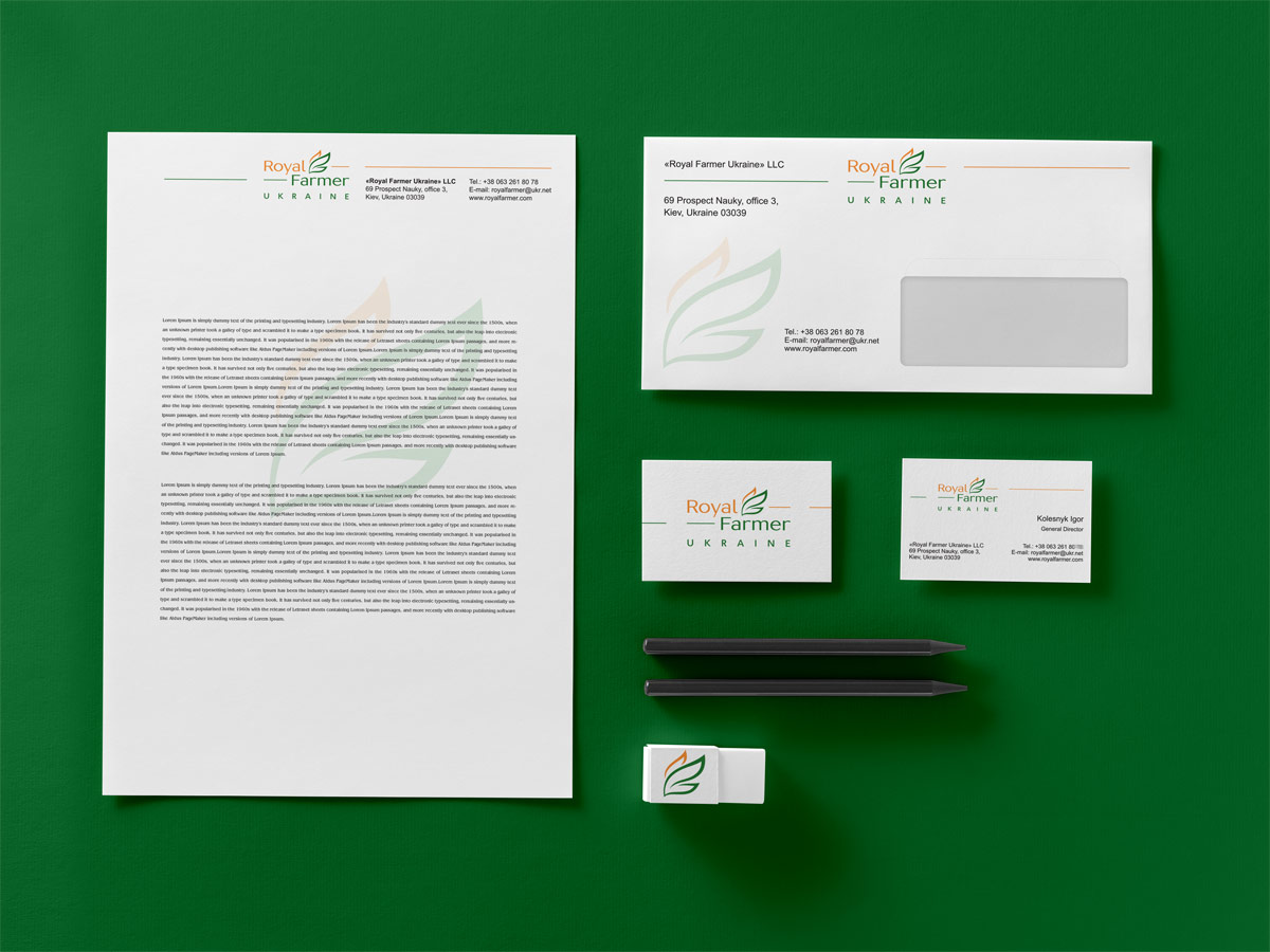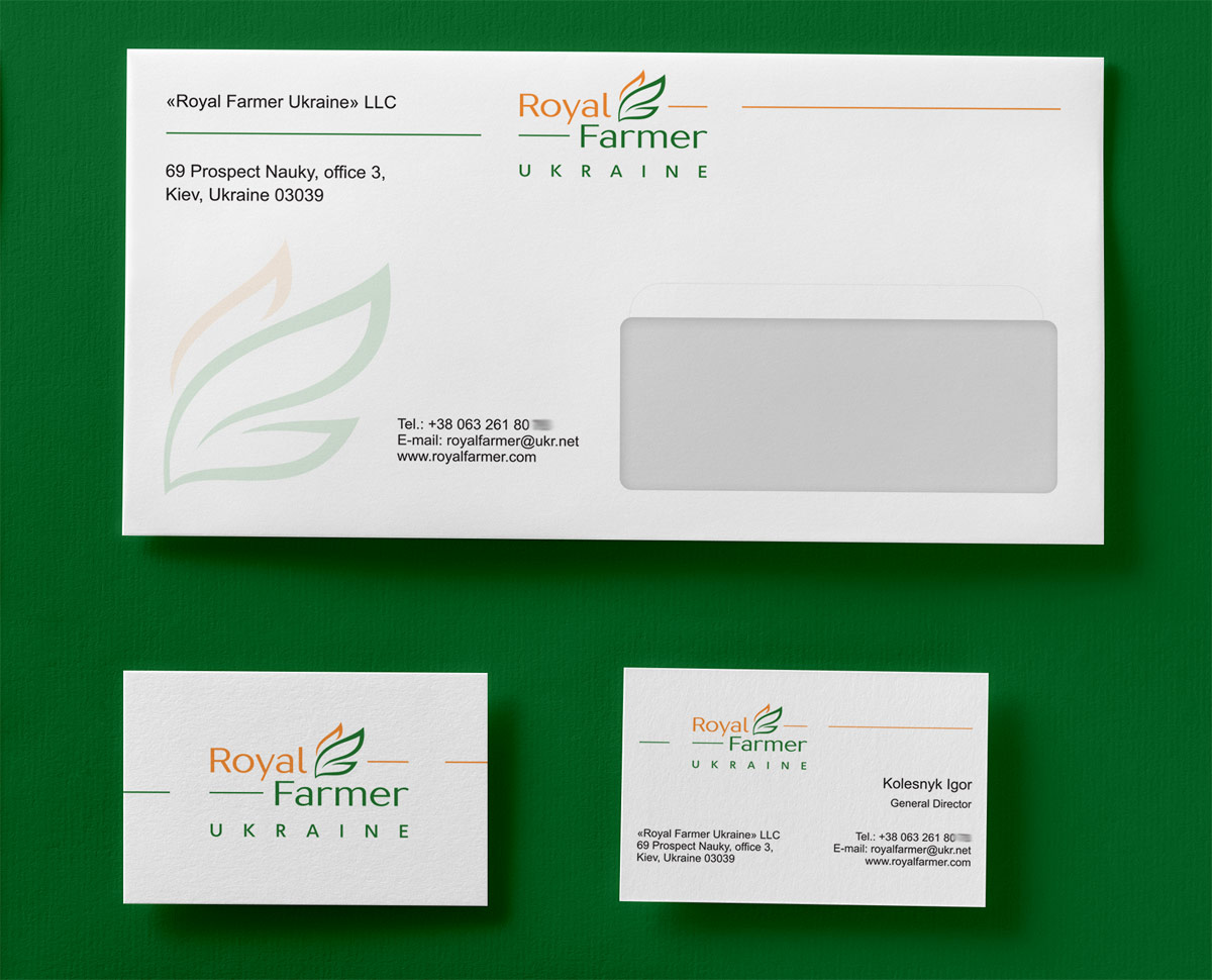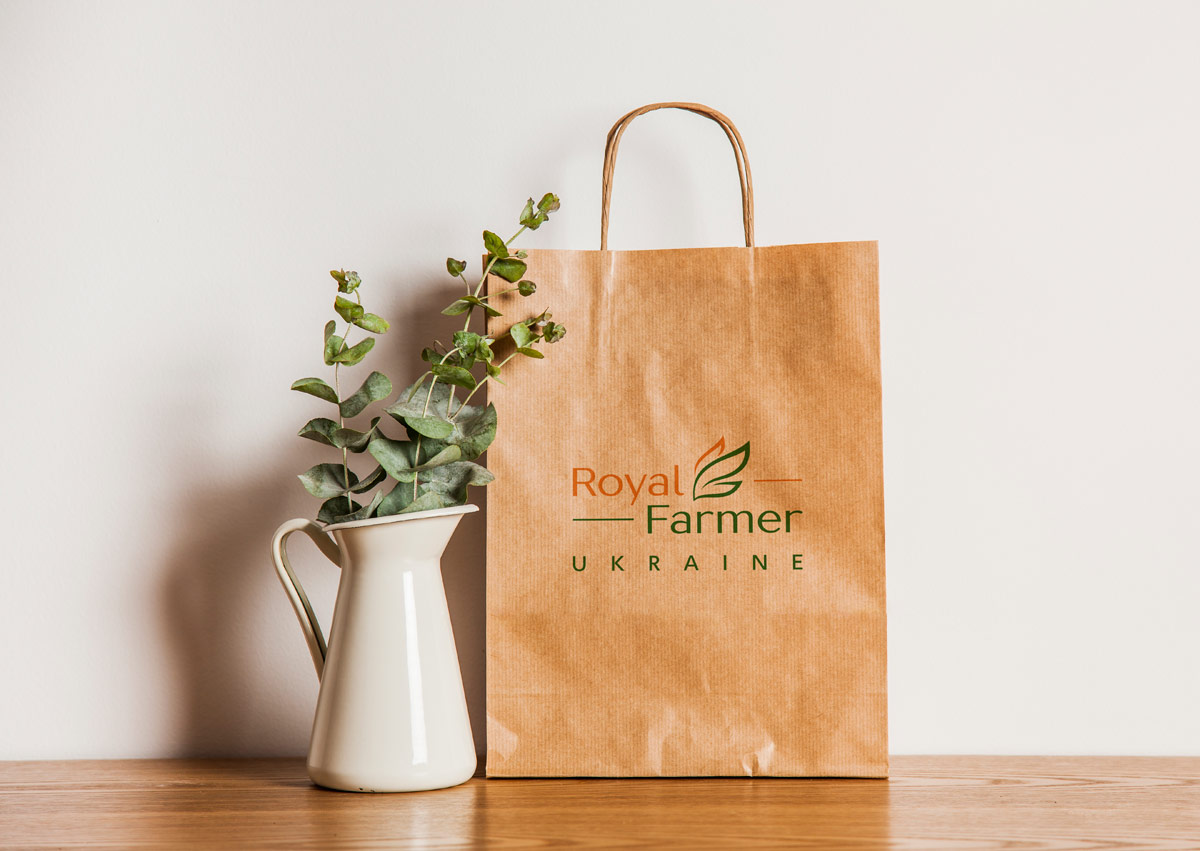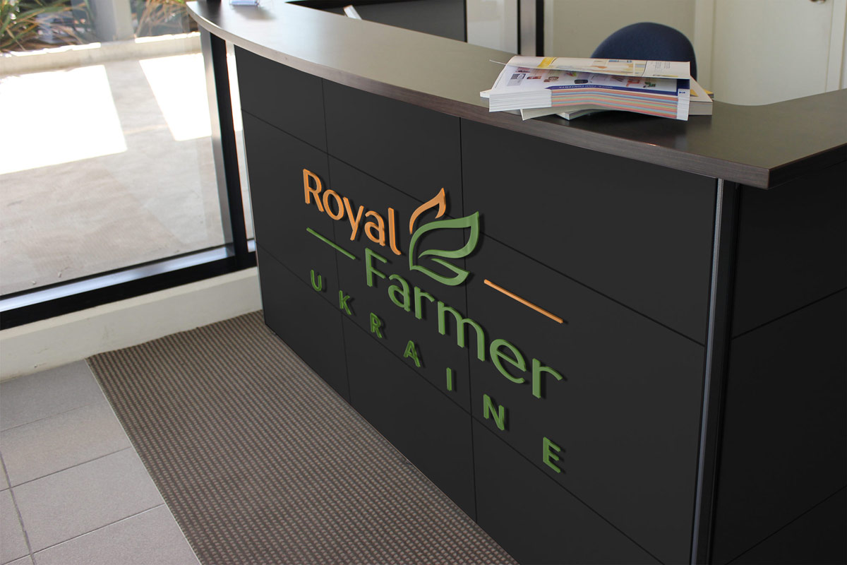 Шрифтовое написание названия в логотипе “Royal Farmer Ukraine” разработано дизайнерами нашей студии и адаптировано под общий стиль бренда.