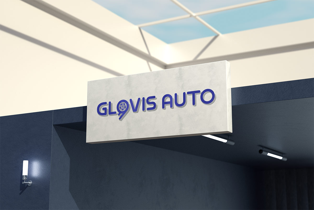 Шрифтовое написание названия “GLOVIS AUTO” в логотипе разработано дизайнерами нашей студии.