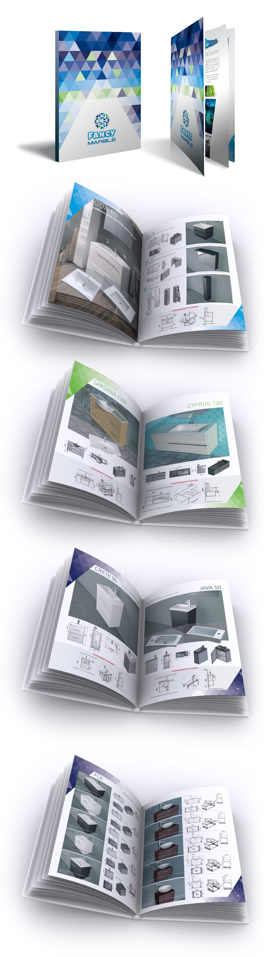 В нашу студию обратились за созданием логотипа и других элементов фирменного стиля для ТМ “FANCY MARBLE” - производство мебели для ванных комнат. Компания предлагает большой ассортимент изделий, который необходимо было отразить в каталоге продукции.