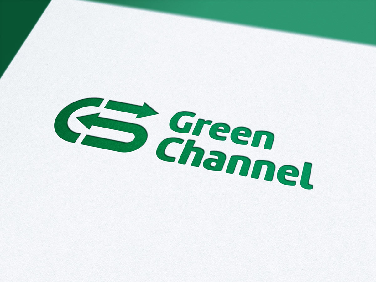Знак разработанного логотипа выполнен в виде буквы “G” стилизованной под изгиб дороги с двумя стрелками, показывающими направления движения (экспорт-импорт) и отражающим название: Green Channel (Зеленый коридор). Общий посыл логотипа – это помощь в решении любых таможенно-брокерских проблем.