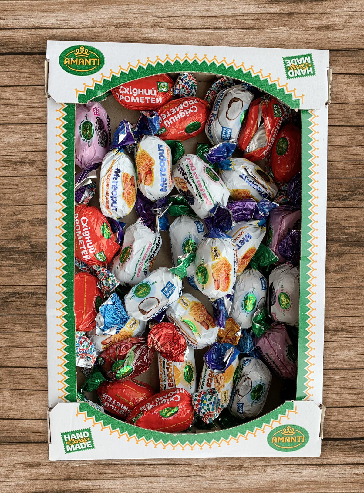 AMANTI - конфеты, покрытые черной или белой глазурью (рахат-лукум покрытый белой пудрой).