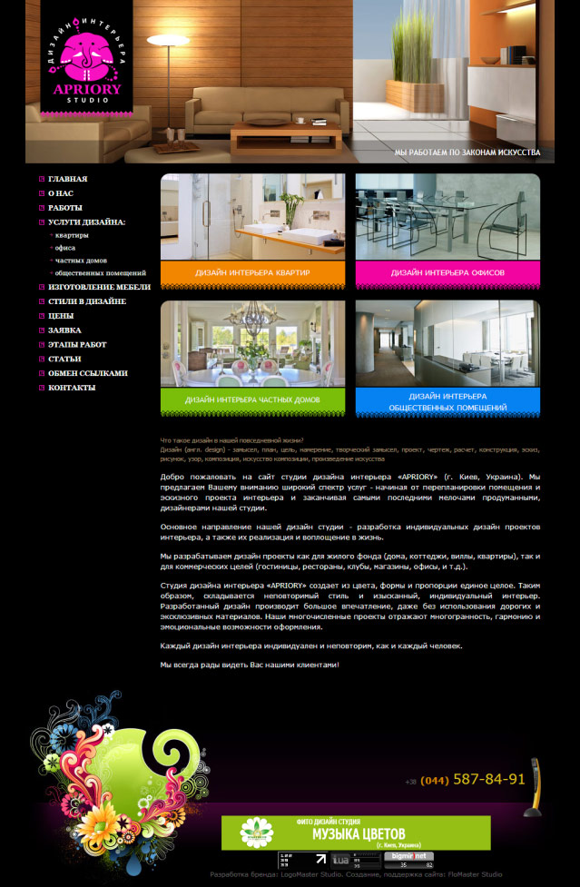 Новая, талантливая киевская студия, которая занимается проектами дизайна интерьера. В студии разрабатывается качественный и современный дизайн интерьера. Студия производит дизайн интерьера: квартир, домов, офисов, ресторанов, магазинов, гостиниц.