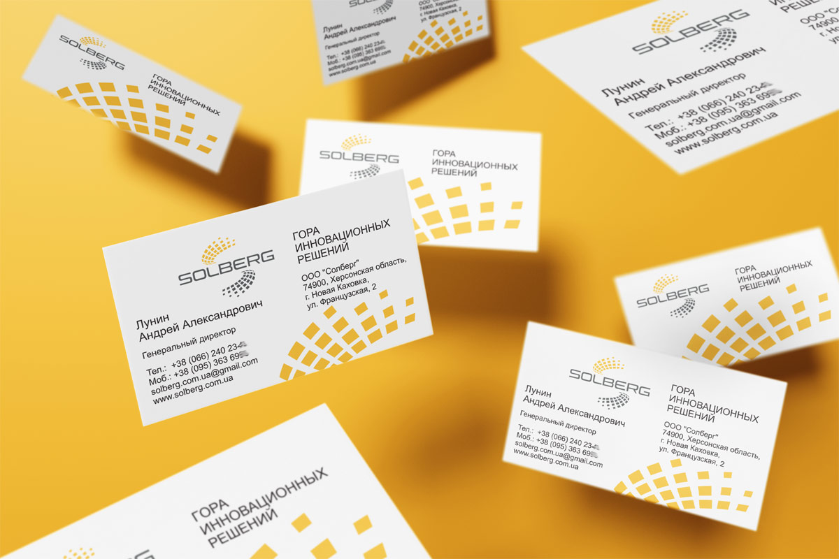 Шрифтовое написание названия “SOLBERG” разработано дизайнерами нашей студии и выполнено в строгом стиле.