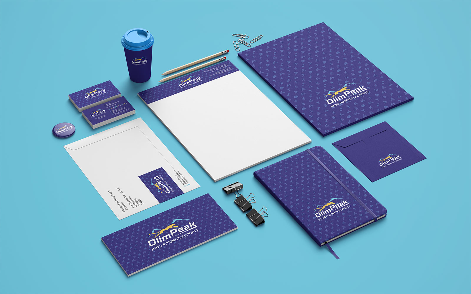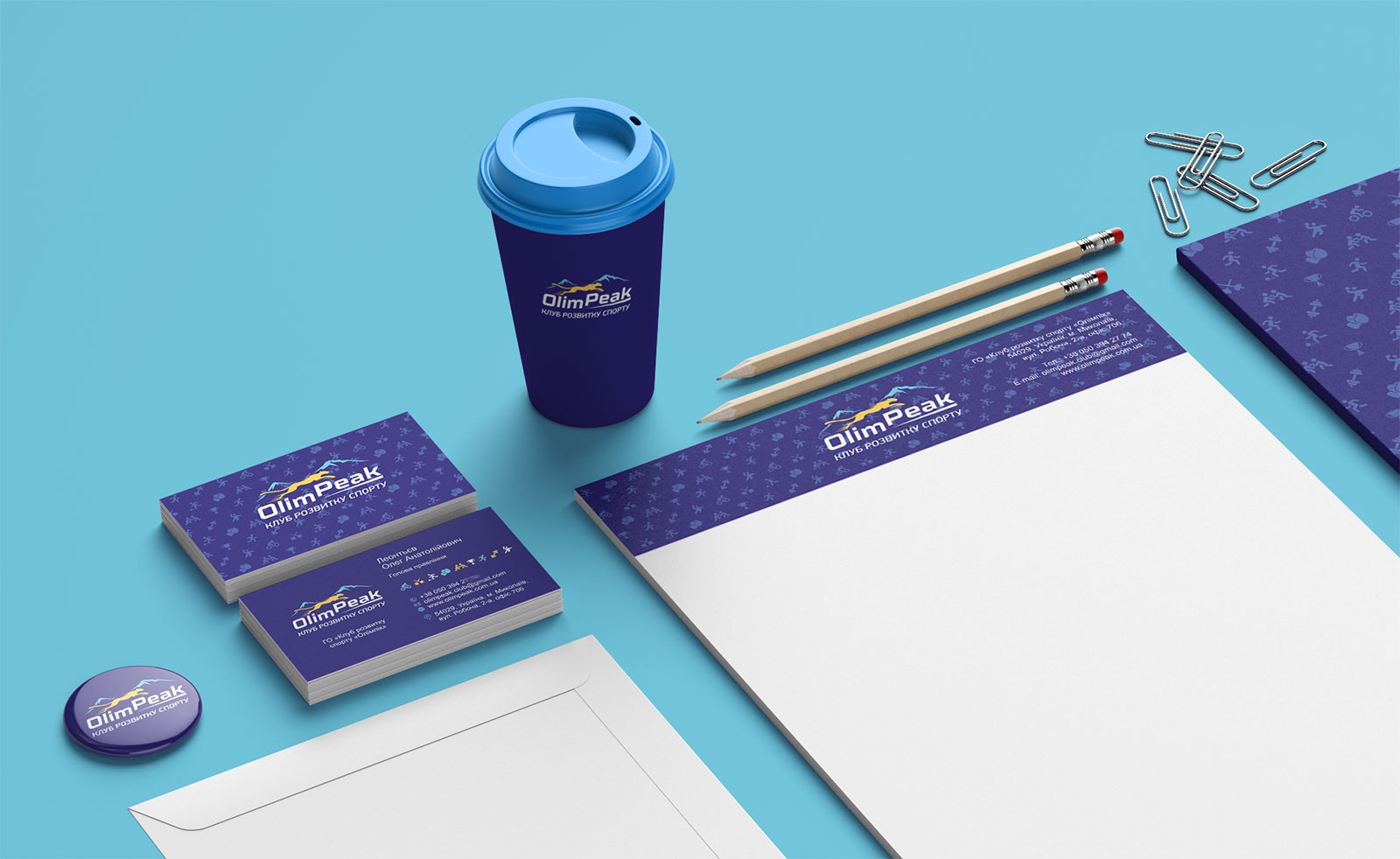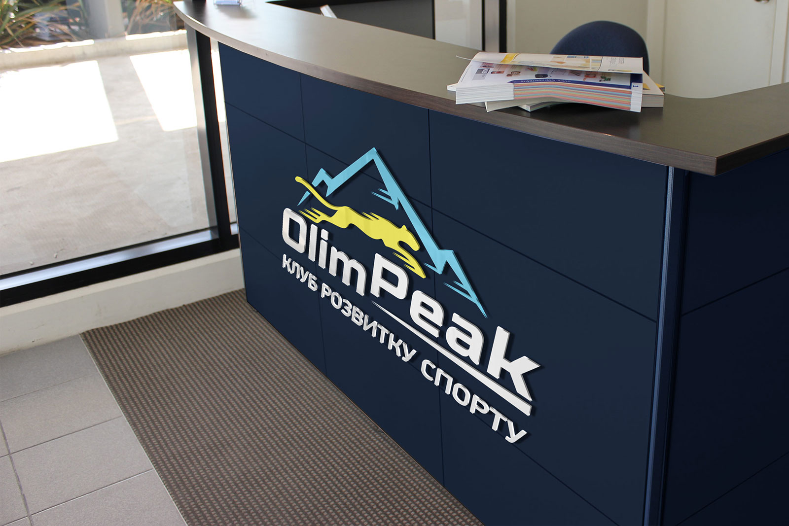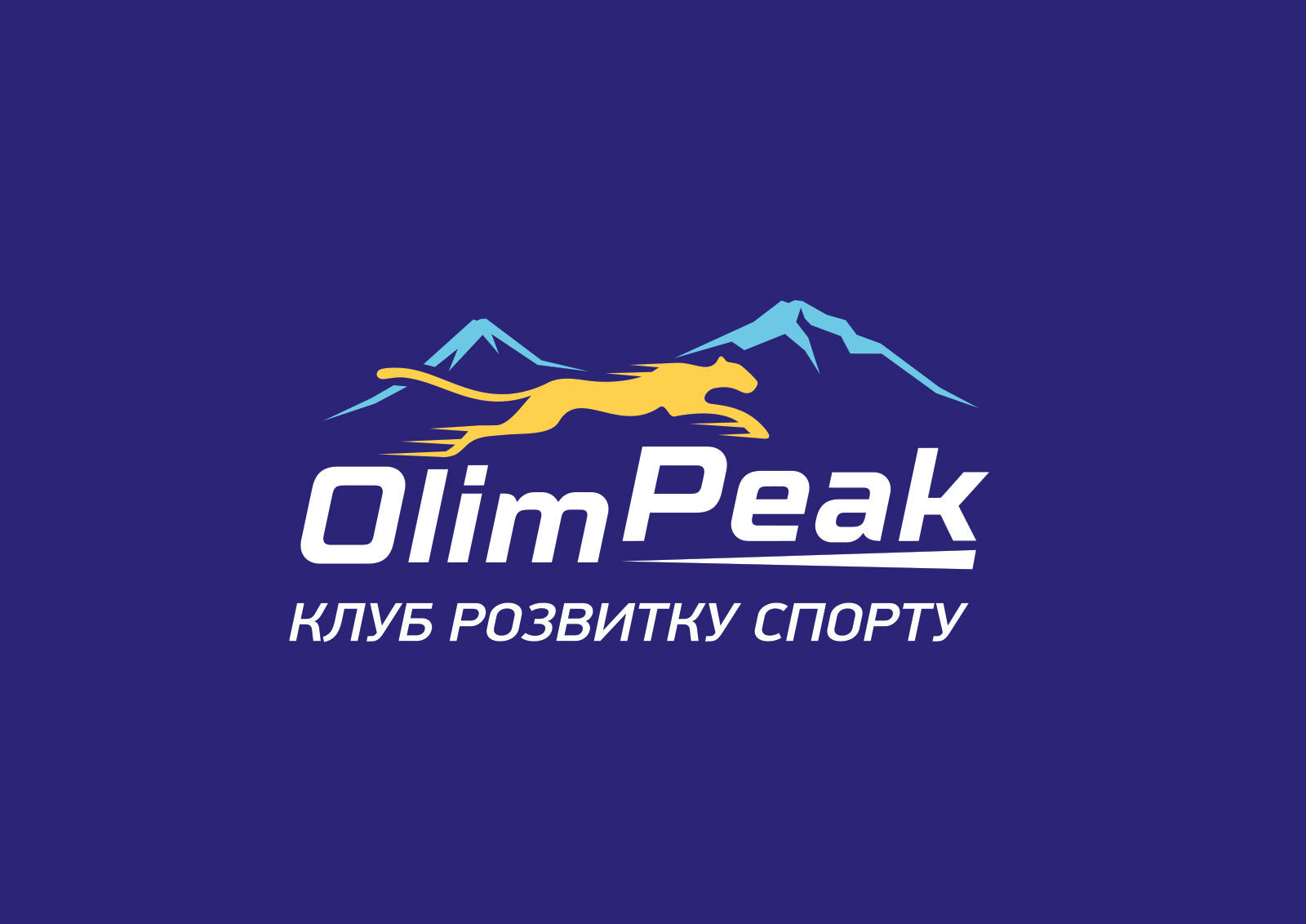 Шрифтовое написание названия “OlimPeak” разработано дизайнерами нашей студии и выполнено в строгом стиле. Для расшифровки деятельности было принято использовать в логотипе дескриптор “КЛУБ РОЗВИТКУ СПОРТУ”.