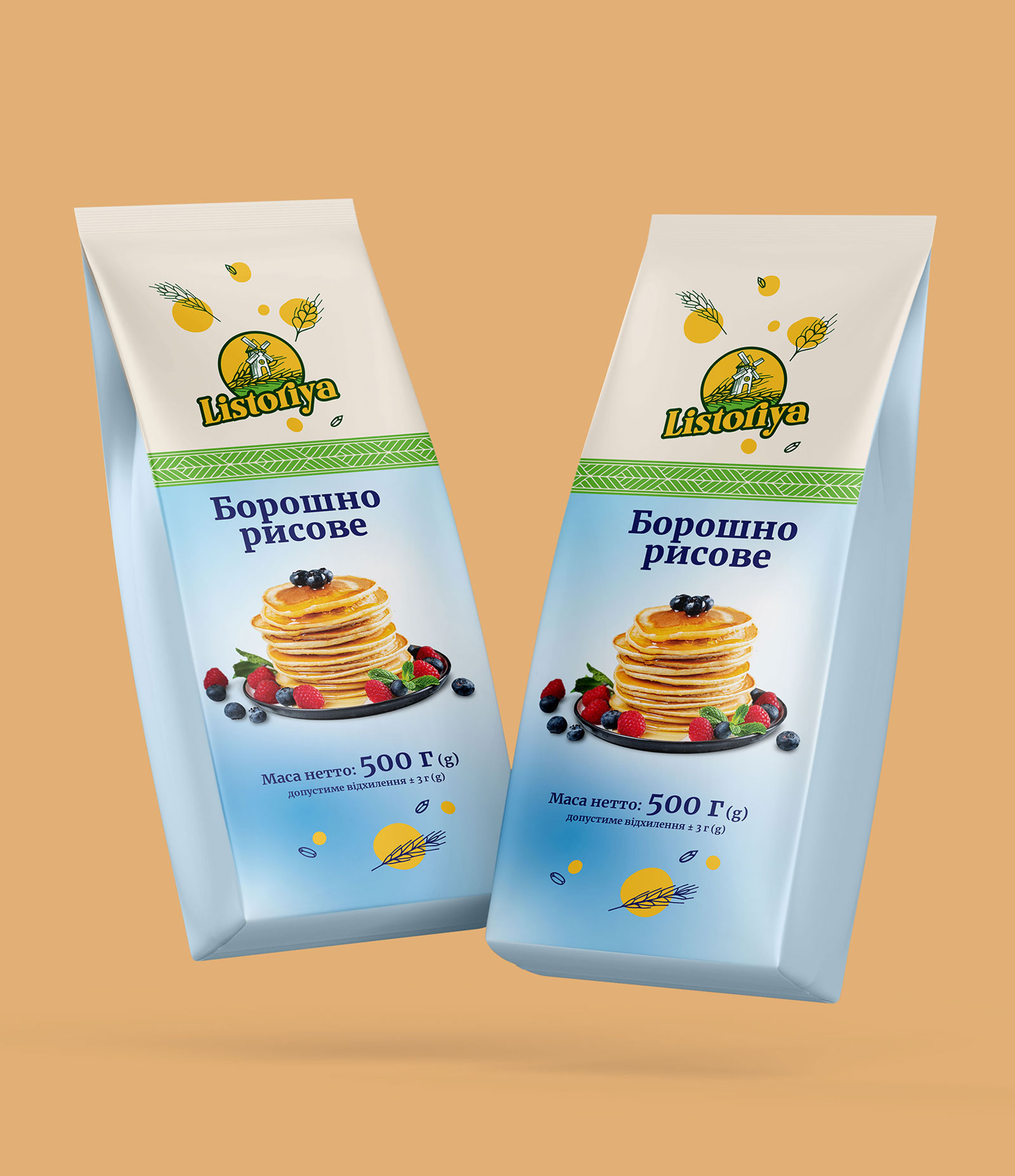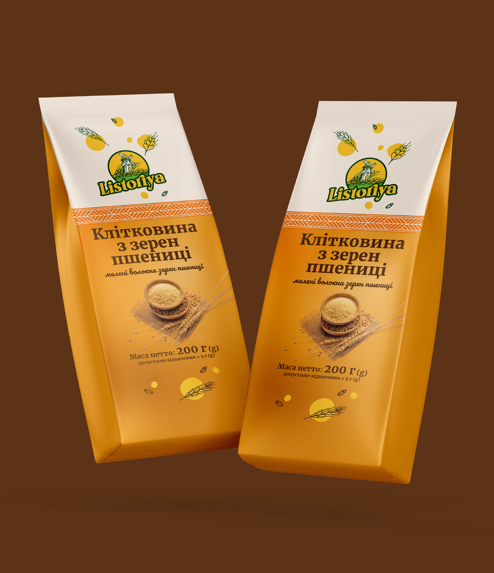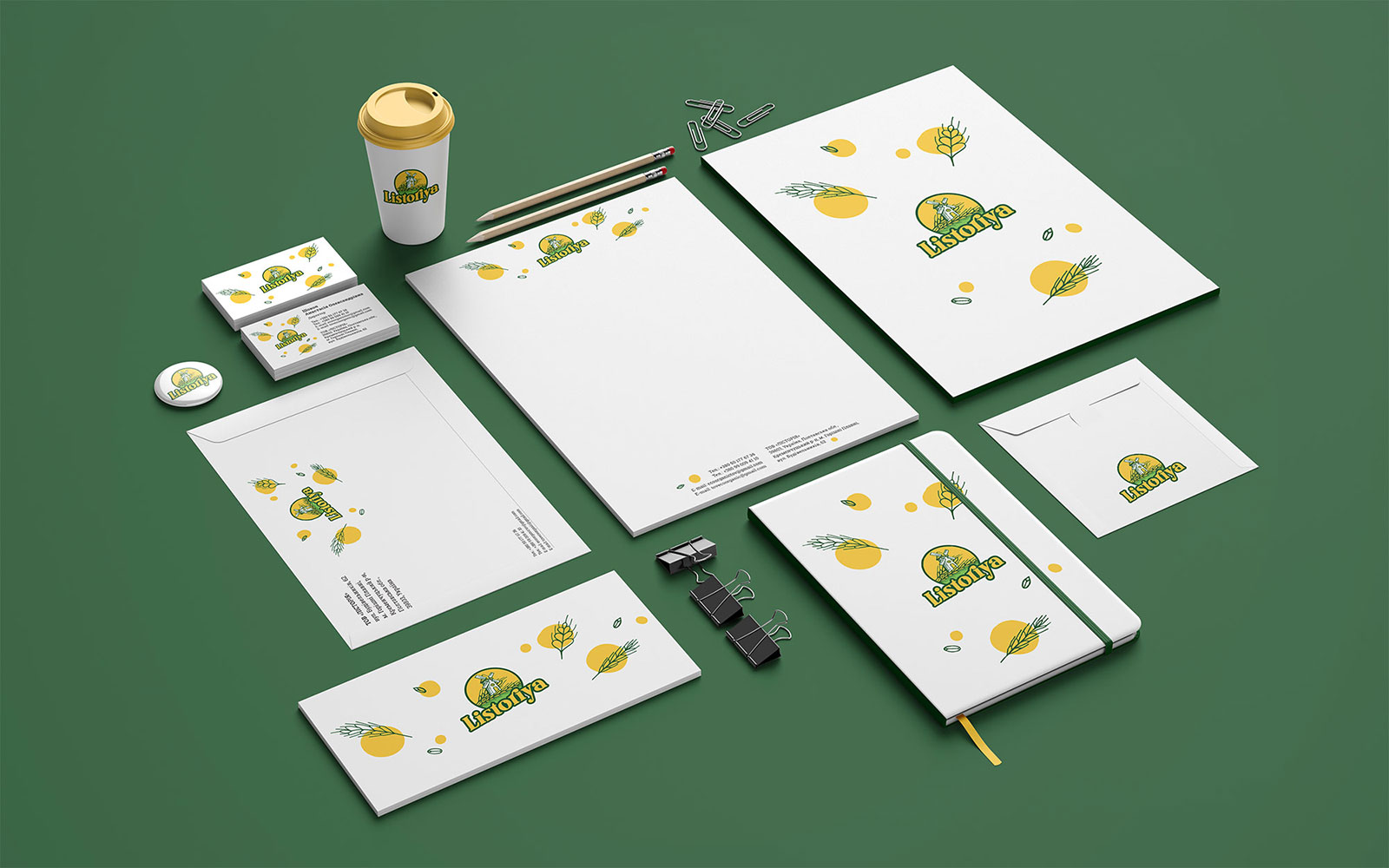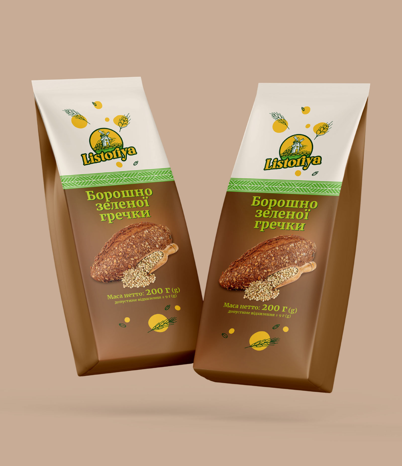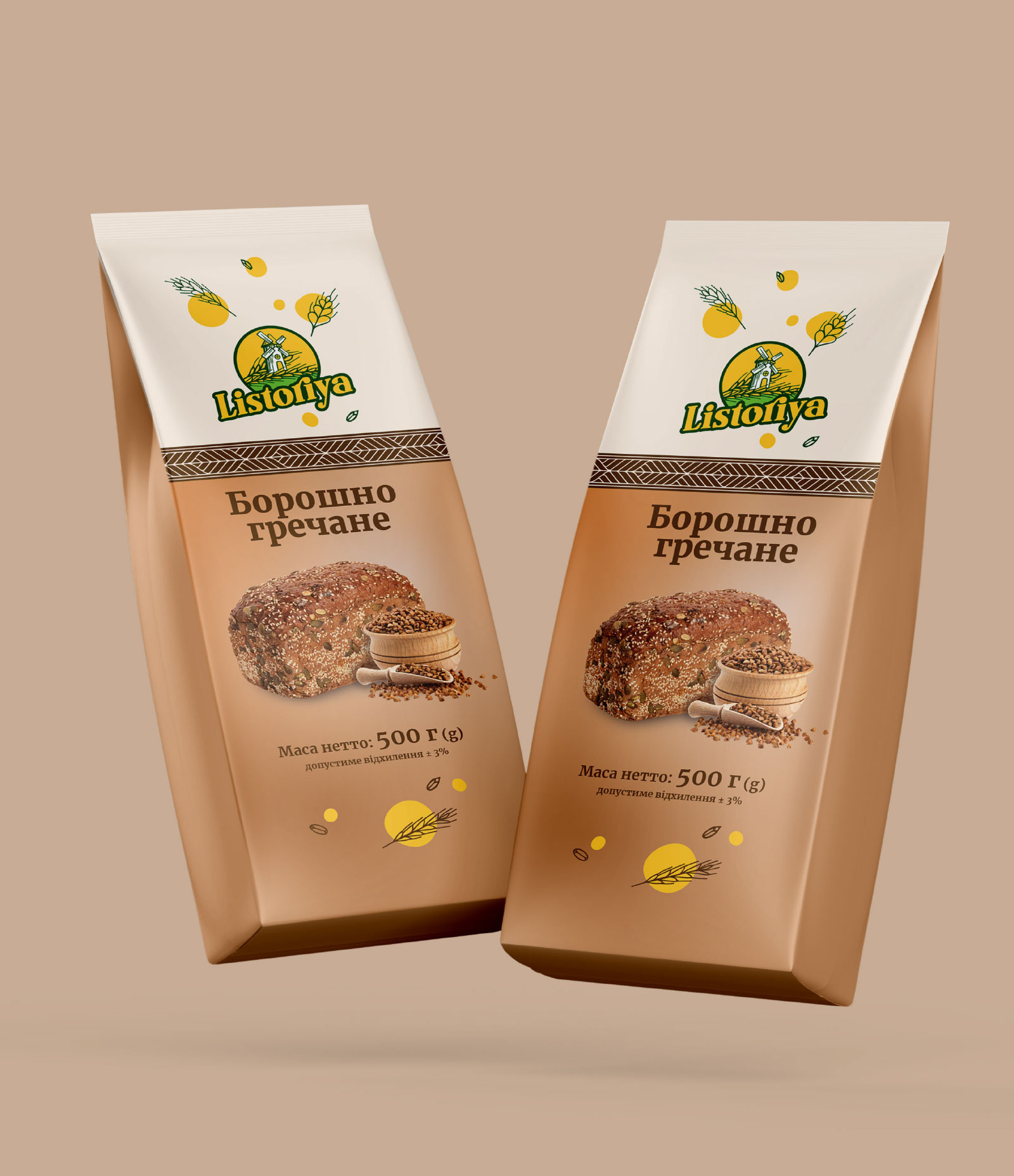 В нашу студию обратились за созданием логотипа, фирменного стиля и дизайна упаковки для ТМ “Listoriya” - мучномельно-крупяная продукция: мука пшеничная, ржаная, безглютеновая, смеси для выпечки, клетчатка, отруби, крупы, макаронные изделия (Украина, Горишние Плавни Полтавской области).