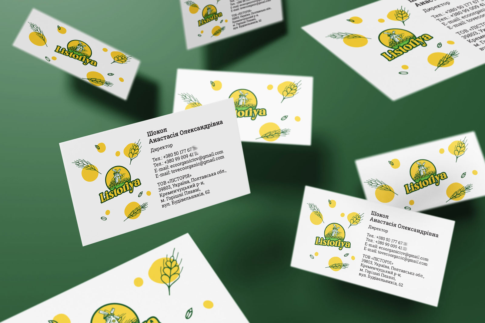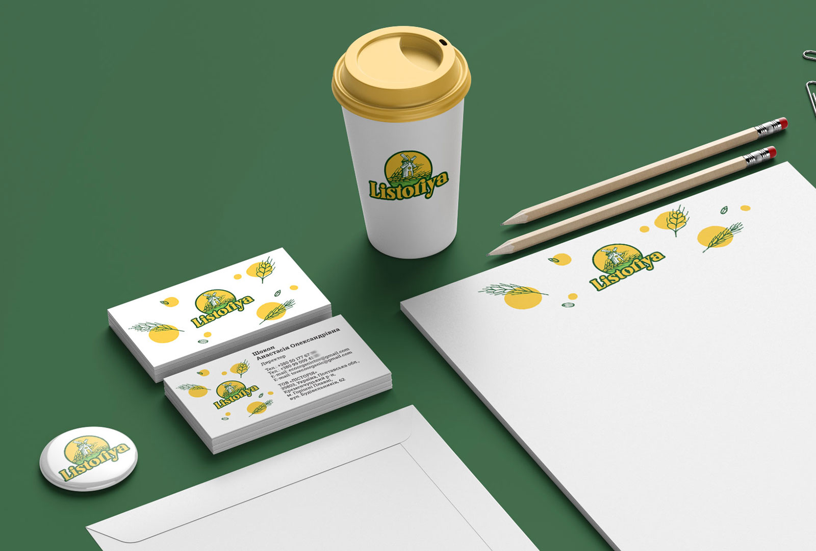 Зеленый и желтый цвета логотипа идеально подчеркивают ключевые ценности бренда: качество, натуральность и позитив. Комбинация зеленого и желтого создает ассоциации с природой, свежестью, энергией и позитивом. Шрифтовое написание названия “Listoriya” в логотипе было разработано дизайнерами нашей студии.