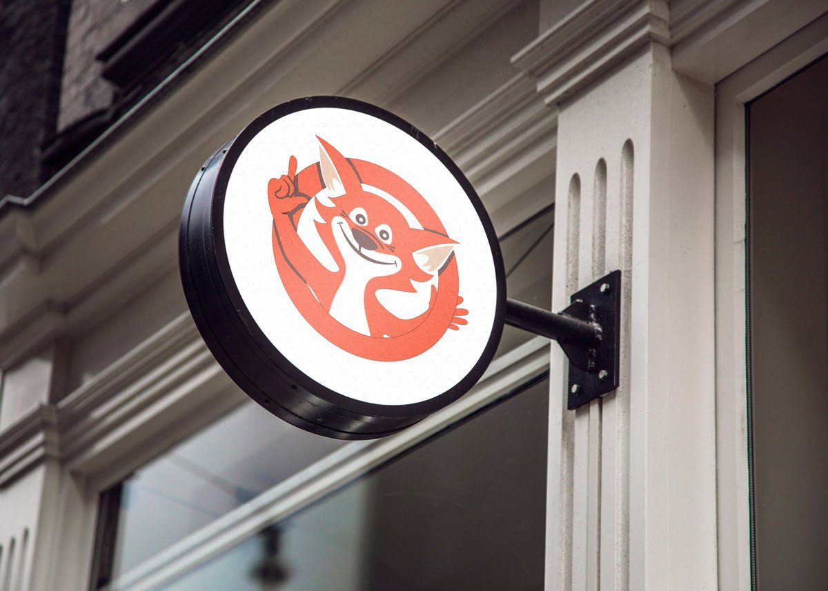 До нашої студії звернулися за розробкою візуального образу бренду – створенням логотипу. Разом із Замовником було прийнято рішення використати лисеня в образі закладу. Веселий і позитивний персонаж тримає руку вгору – ніби запрошуючи до себе в заклад і говорячи про те, що тут завжди дуже висока якість продукції.