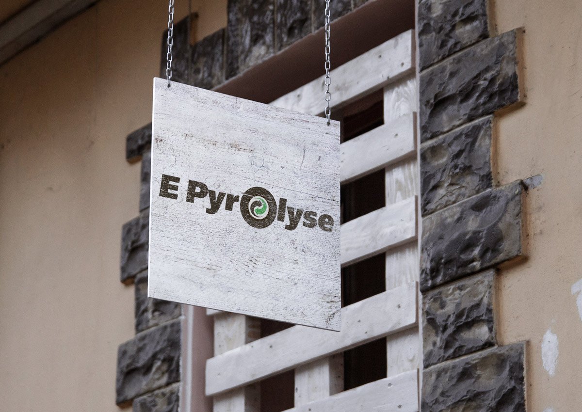 До нашої студії звернулися за розробкою візуального образу бренду – створенням логотипу компанії. Основне завдання логотипу – відобразити тематику діяльності, оригінальність та запам'ятовуваність. Графічна частина логотипу є шрифтовим написанням назви "E Pyrolyse" в якому буква O стилізована під автомобільне колесо із символом утилізації продукції всередині.