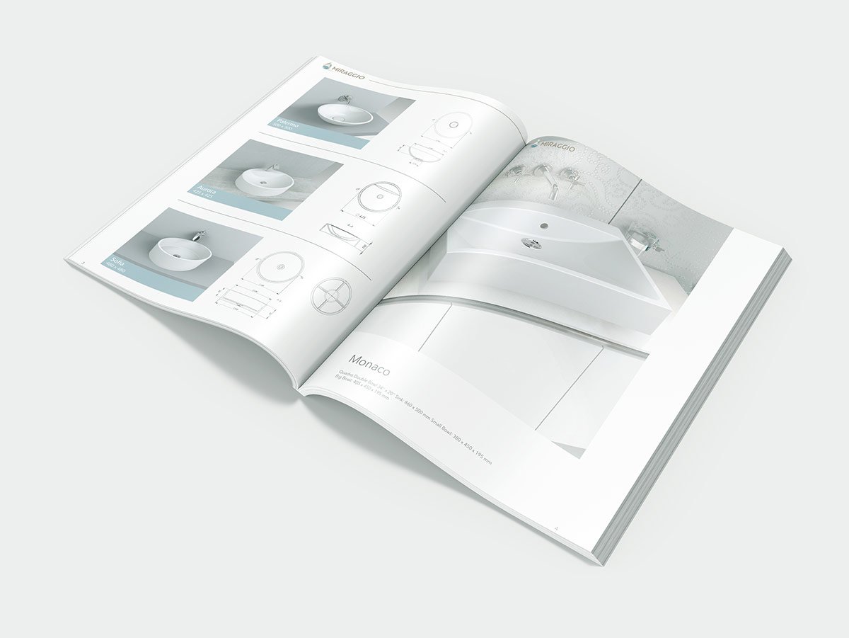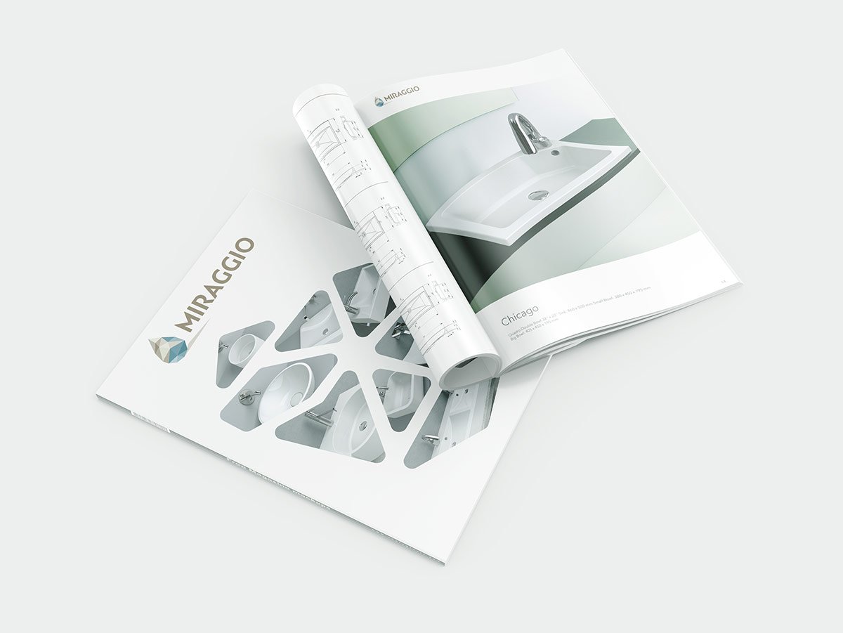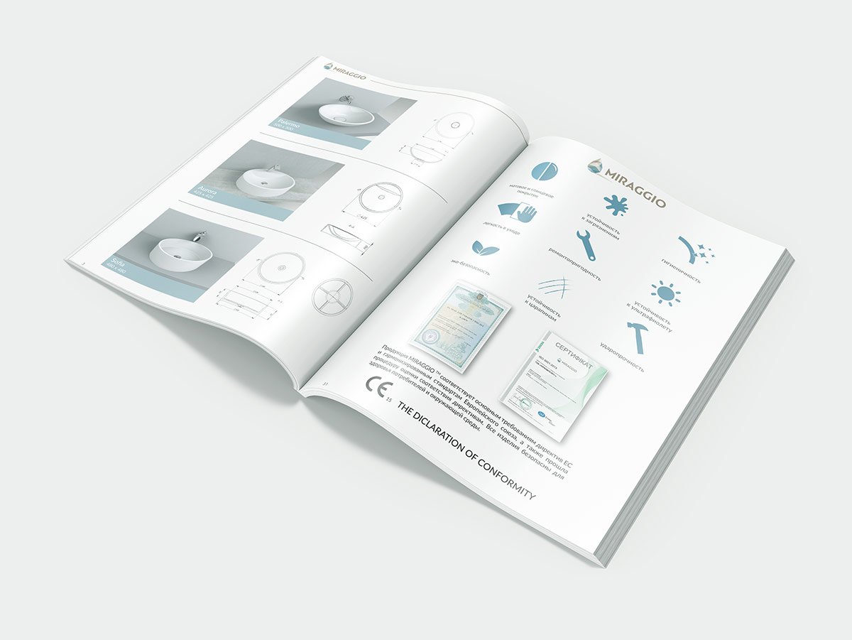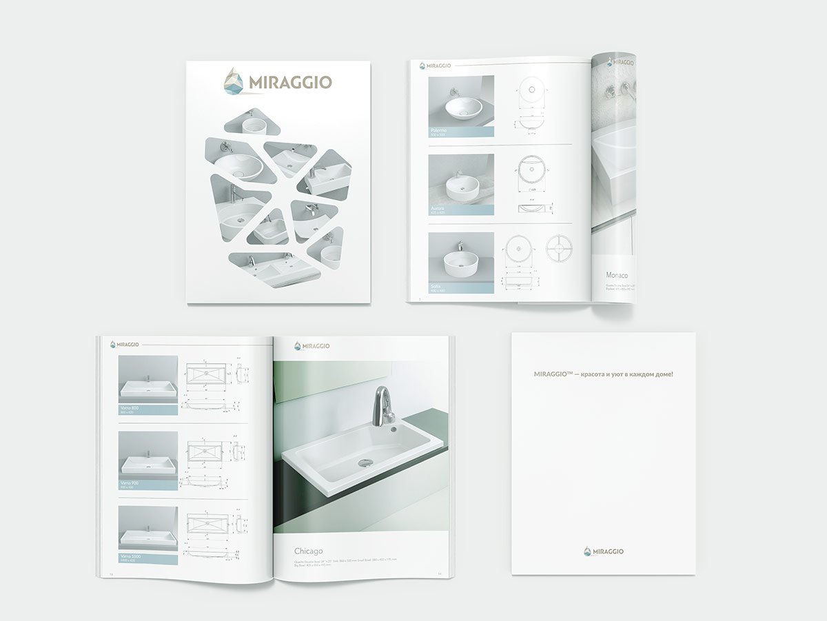 Розробка дизайну та верстка каталогу для ТМ "MIRAGGIO" (Україна) - виробництво сантехніки, в основі якої лежать сучасні технології та актуальні дизайнерські рішення.