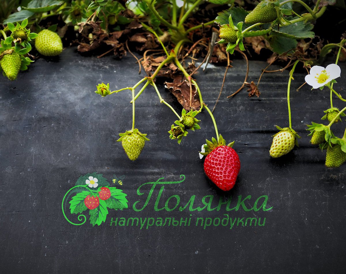 Графічна частина логотипу виконана у вигляді куща суниці з бджолою. Знак виконаний у вигляді кола для характеристики бренду як єдиного, цілісного та універсального. У логотипі використаний великий шрифт, що запам'ятовується, розроблений дизайнерами нашої студії. Зелений колір логотипу відображає натуральність продукції та привертає до себе увагу на вивісці.