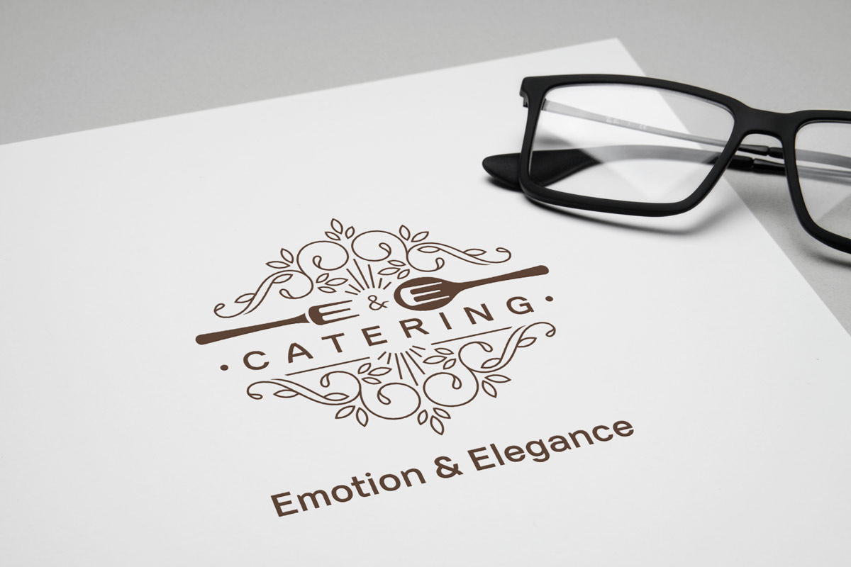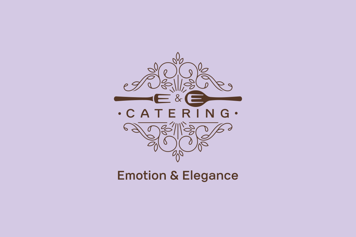 Знак розробленого логотипу виконаний у вінтажному стилі та на пряму відображає тематику діяльності компанії – кейтеринг. Вилка та ложка, стилізовані таким чином, що в них зашифровані літери E&E. Це імена власників компанії: Elena/Eugeniy, а також початкові літери слогана Emotions & Elegance. Кольорове рішення виконане у теплих кольорах: світло-фіолетовий (лаванда) та світло-коричневий (молочний шоколад). Дане колірне рішення дуже рідкісне в області кейтерингу і однозначно дуже добре запам'ятовуватиметься Клієнтами.