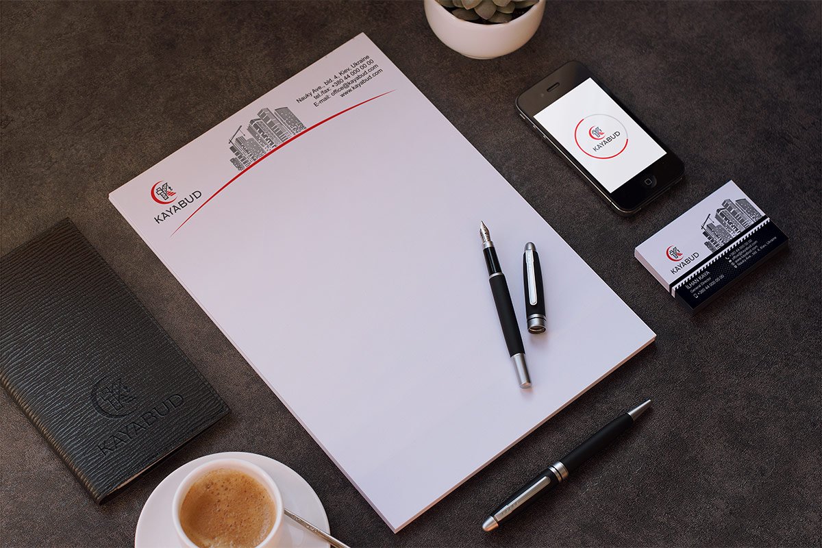 Шрифтове написання назви “KAYABUD” розроблено дизайнерами нашої студії та виконане у строгому стилі.