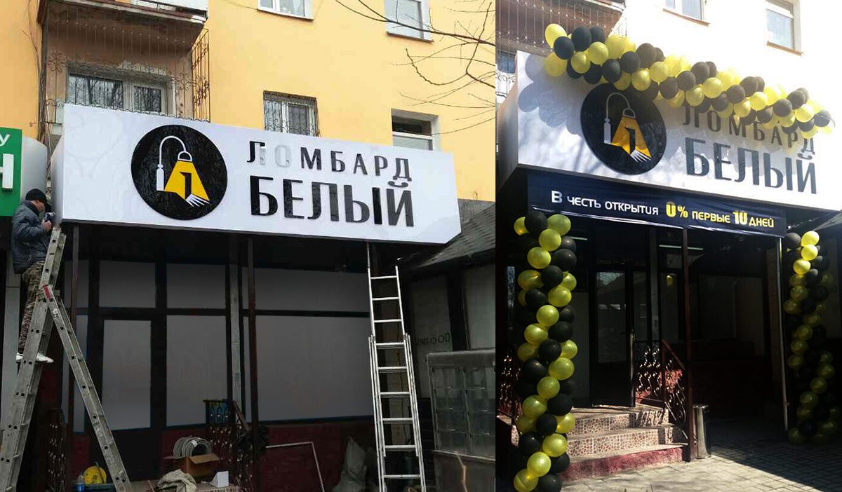 Пошук кольорового рішення для цього проекту виявився захоплюючим і дуже непростим. Ми перебрали багато поєднань кольорів і зупинилися на чорному та золотистому кольорі. Чорний колір логотипу відображає строгість і точність ломбарду, а також цей колір грає на контрасті під назвою "БІЛИЙ". Золотий – колір грошей та лідерства. Відображає надійність та високу якість послуг ломбарду.