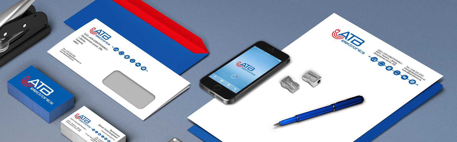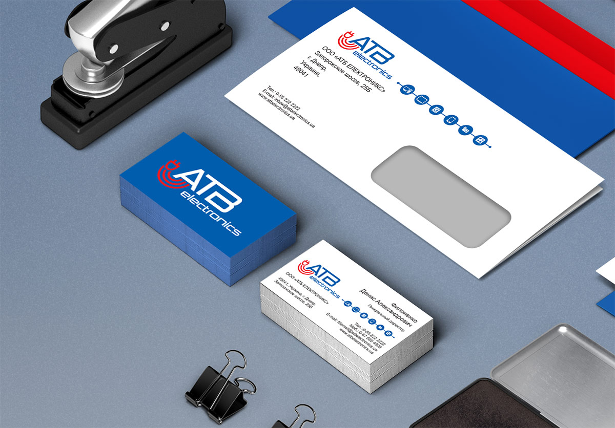 Шрифтове написання назви “ATB electronics” розроблено дизайнерами нашої студії та виконано у техно-стилі.