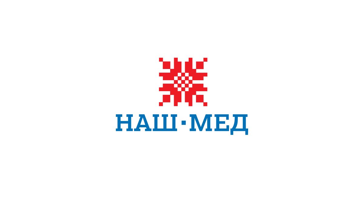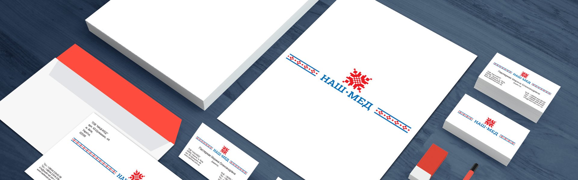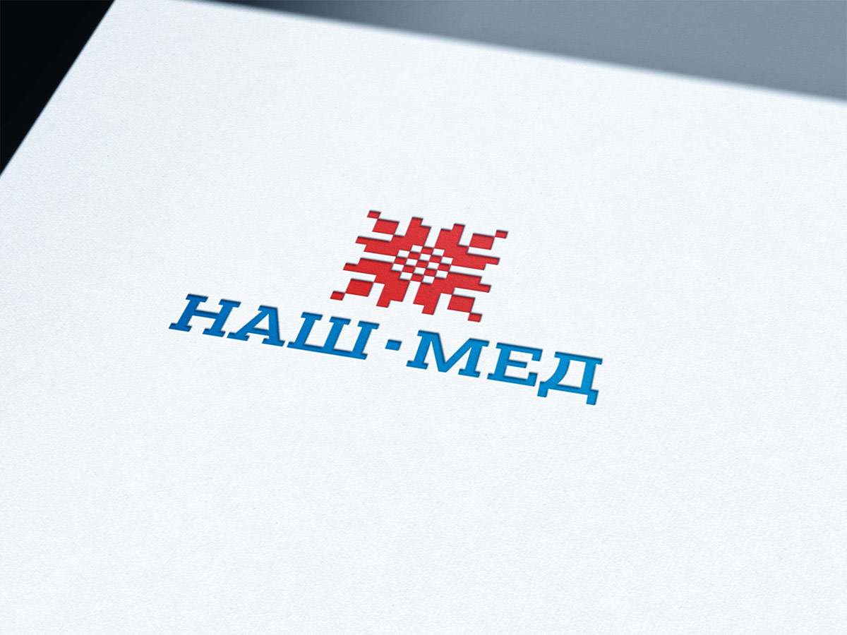 Шрифтове написання назви “НАШ-МЕД” розроблено дизайнерами нашої студії та виконане у строгому стилі.