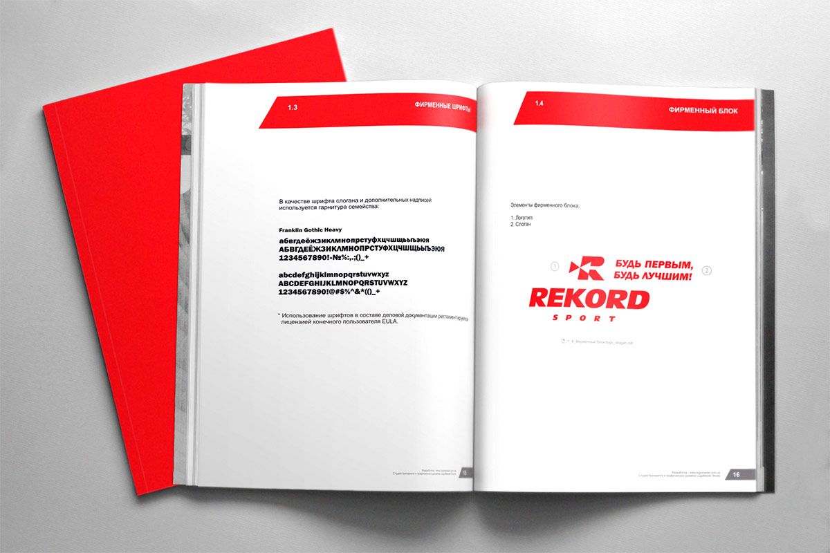 Шрифтове написання назви REKORD в логотипі розроблено дизайнерами нашої студії.