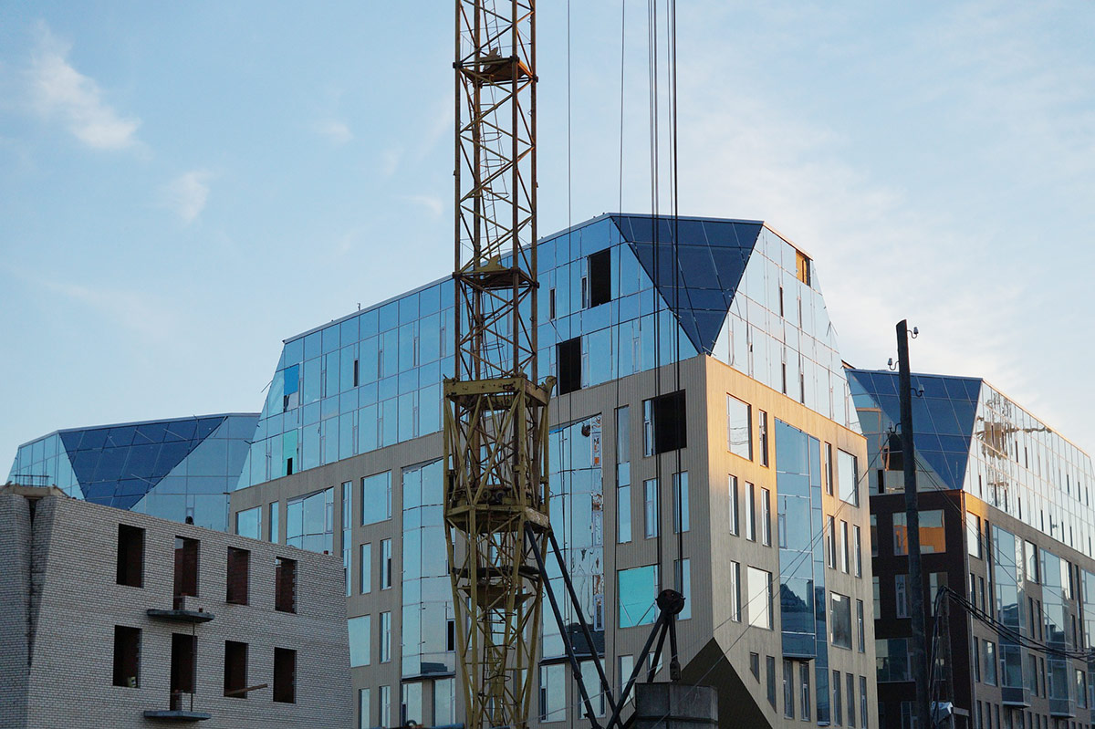 Після детального обговорення різних варіантів, Замовник затвердив наведений нижче логотип. Знак розробленого логотипу виконаний у вигляді трьох сучасних будинків, що відображають у собі інновації та передові технології, які використовує компанія у своїй роботі.