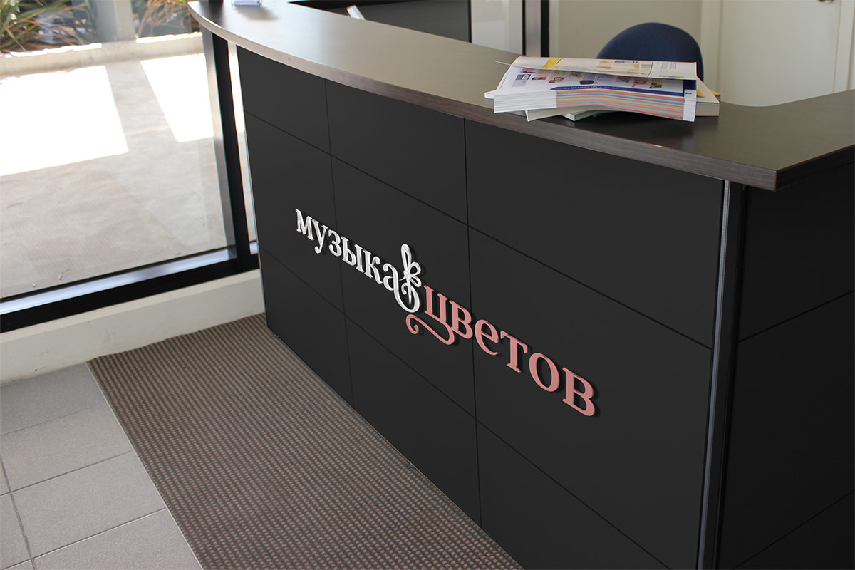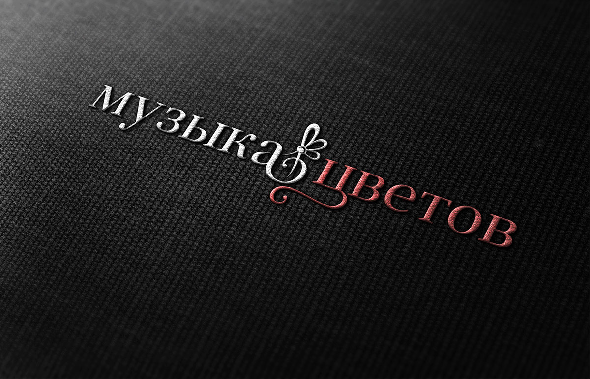 Шрифтове написання назви “МУЗИКА КВІТІВ” розроблено дизайнерами нашої студії та виконане у строгому стилі.