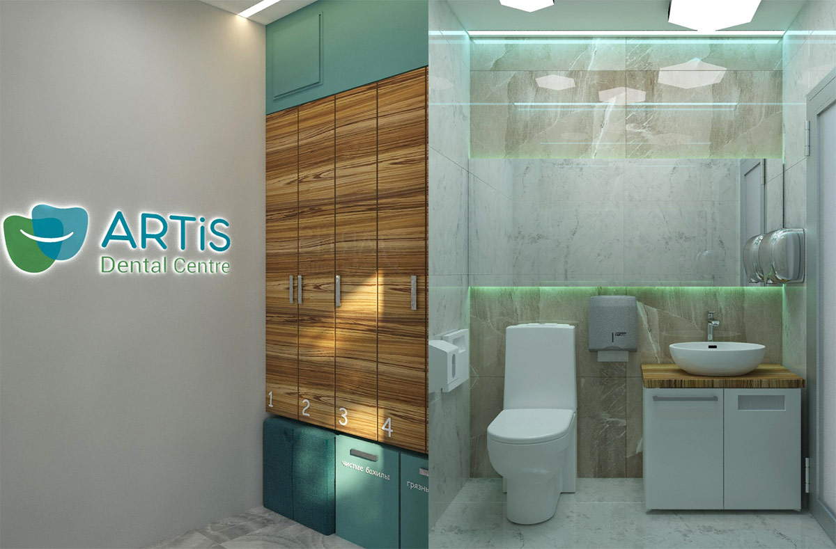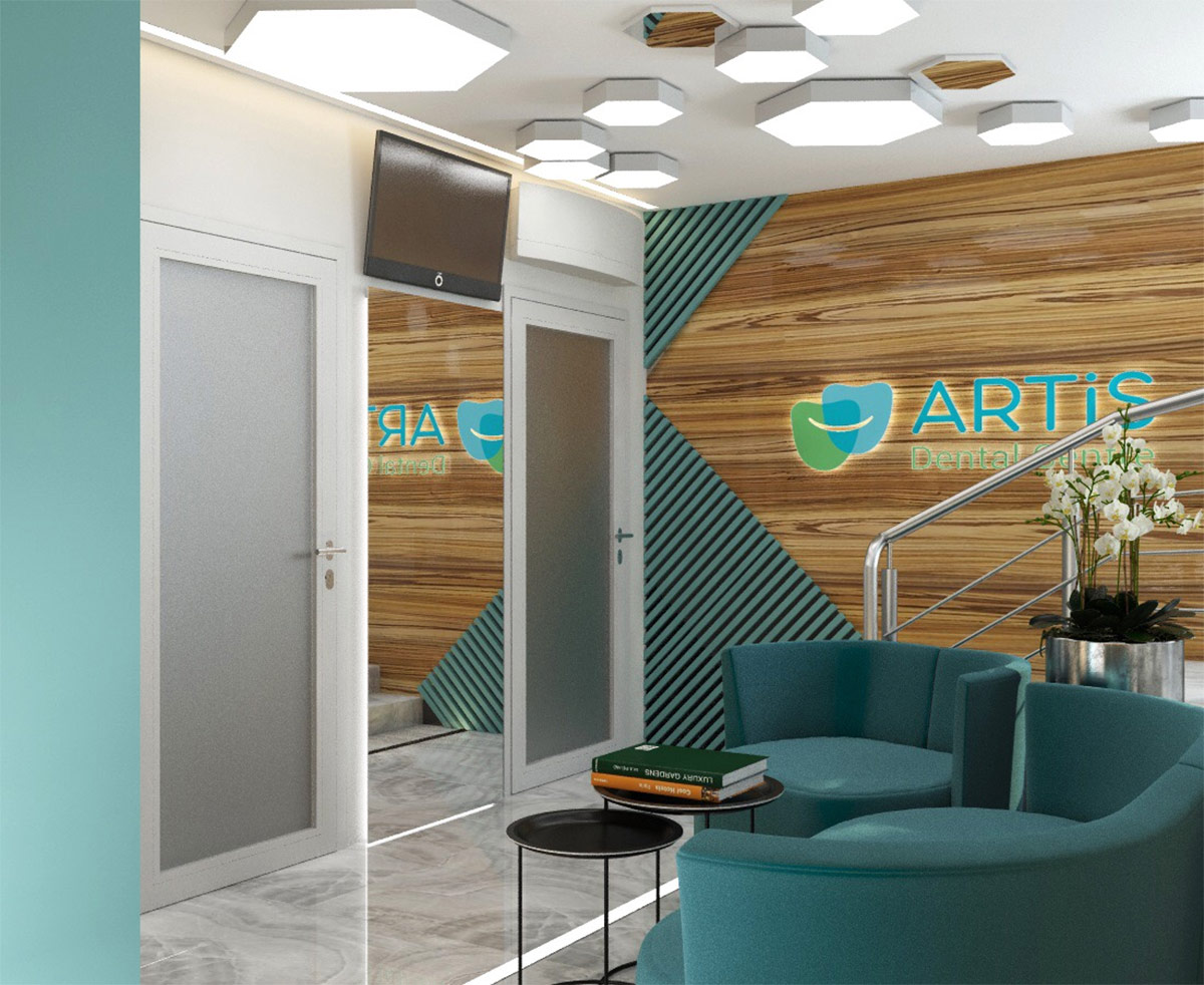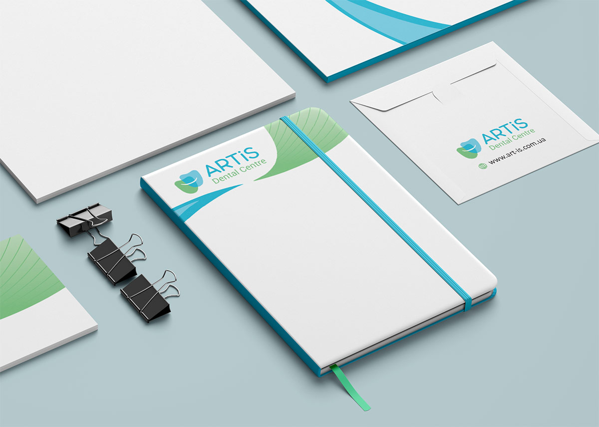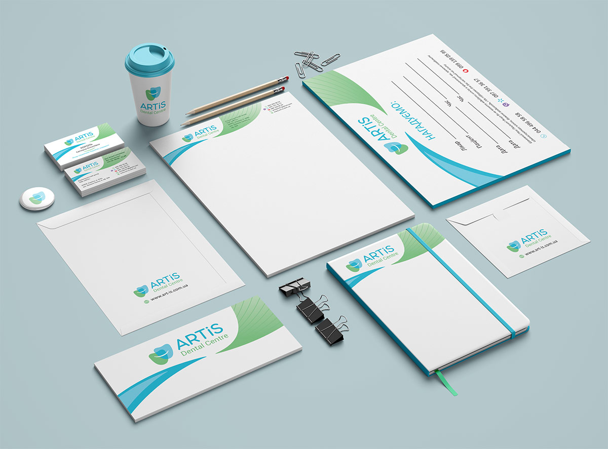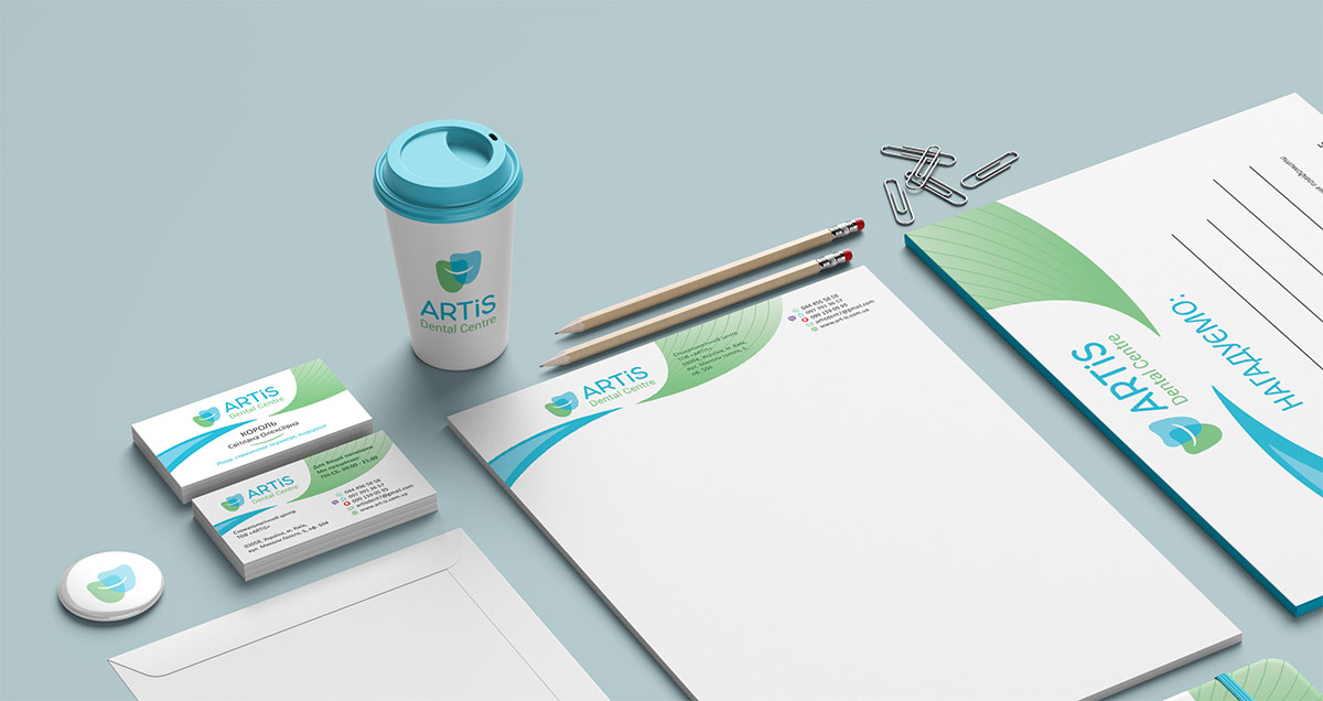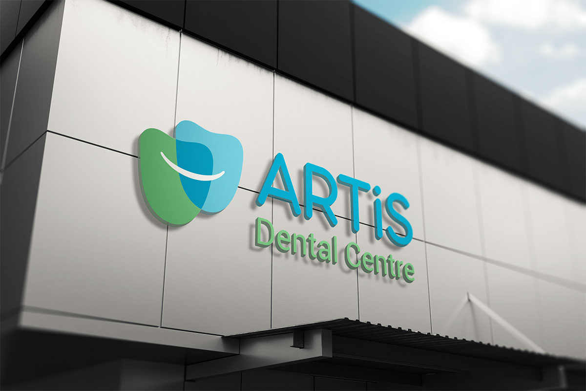 Шрифтове написання назви “ARTIS Dental Centre” розроблено дизайнерами нашої студії та виконане у строгому стилі.