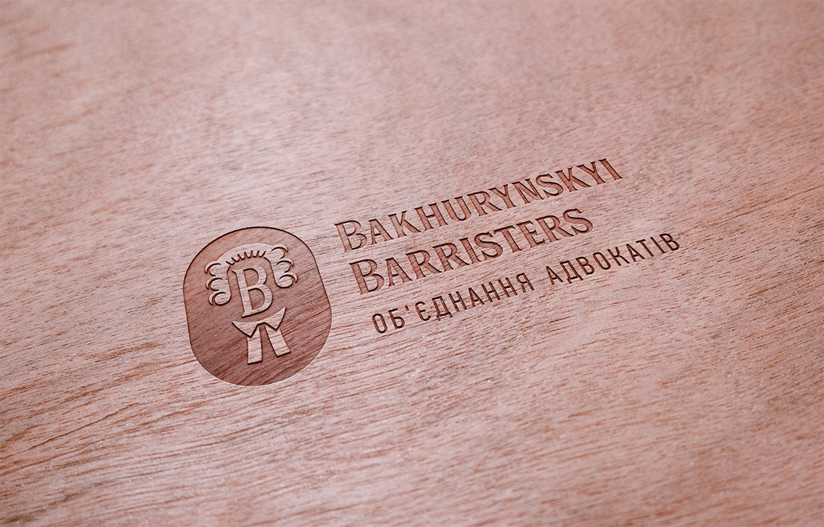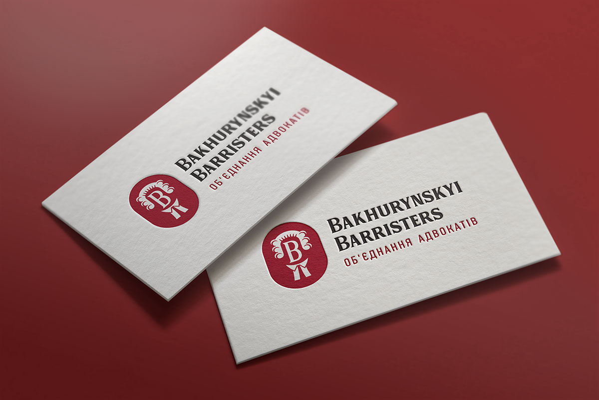 Шрифтове написання назви "Bakhurynskyi Barristers" у логотипі розроблено дизайнерами нашої студії в англійському стилі. Для розшифровки діяльності у логотипі використовується дескриптор “об'єднання адвокатів”.