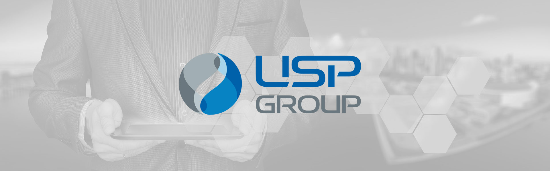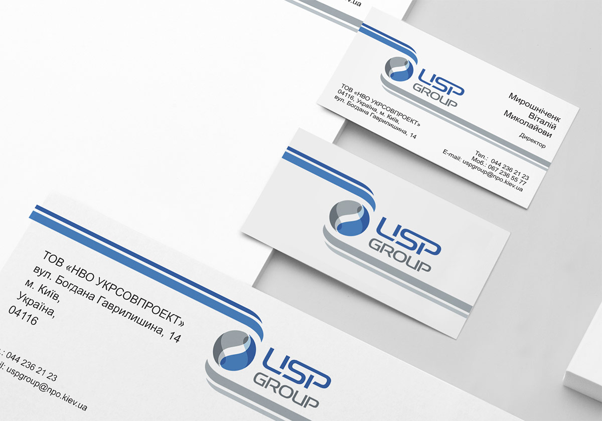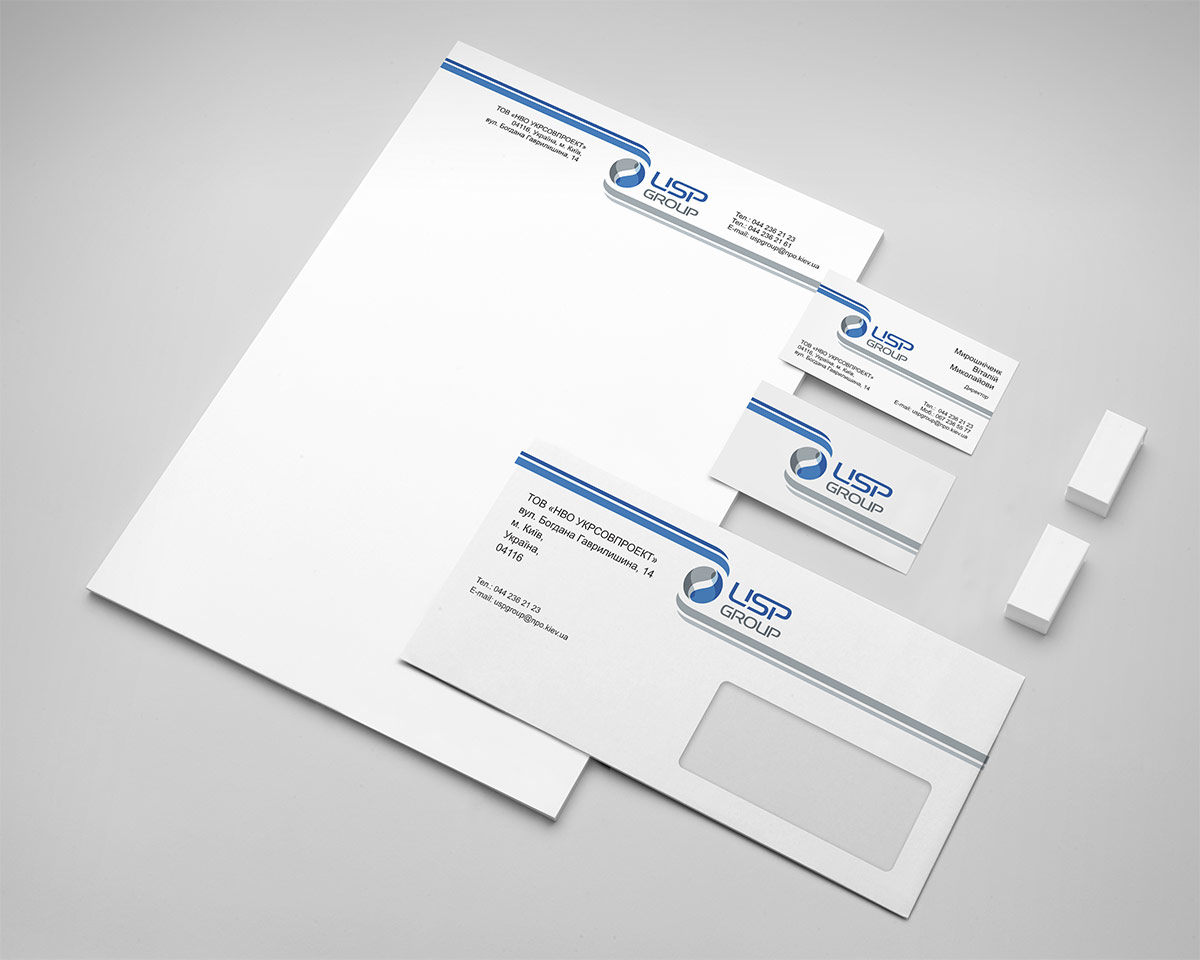 Шрифтове написання назви “USP group” розроблено дизайнерами нашої студії та виконане у строгому стилі.
