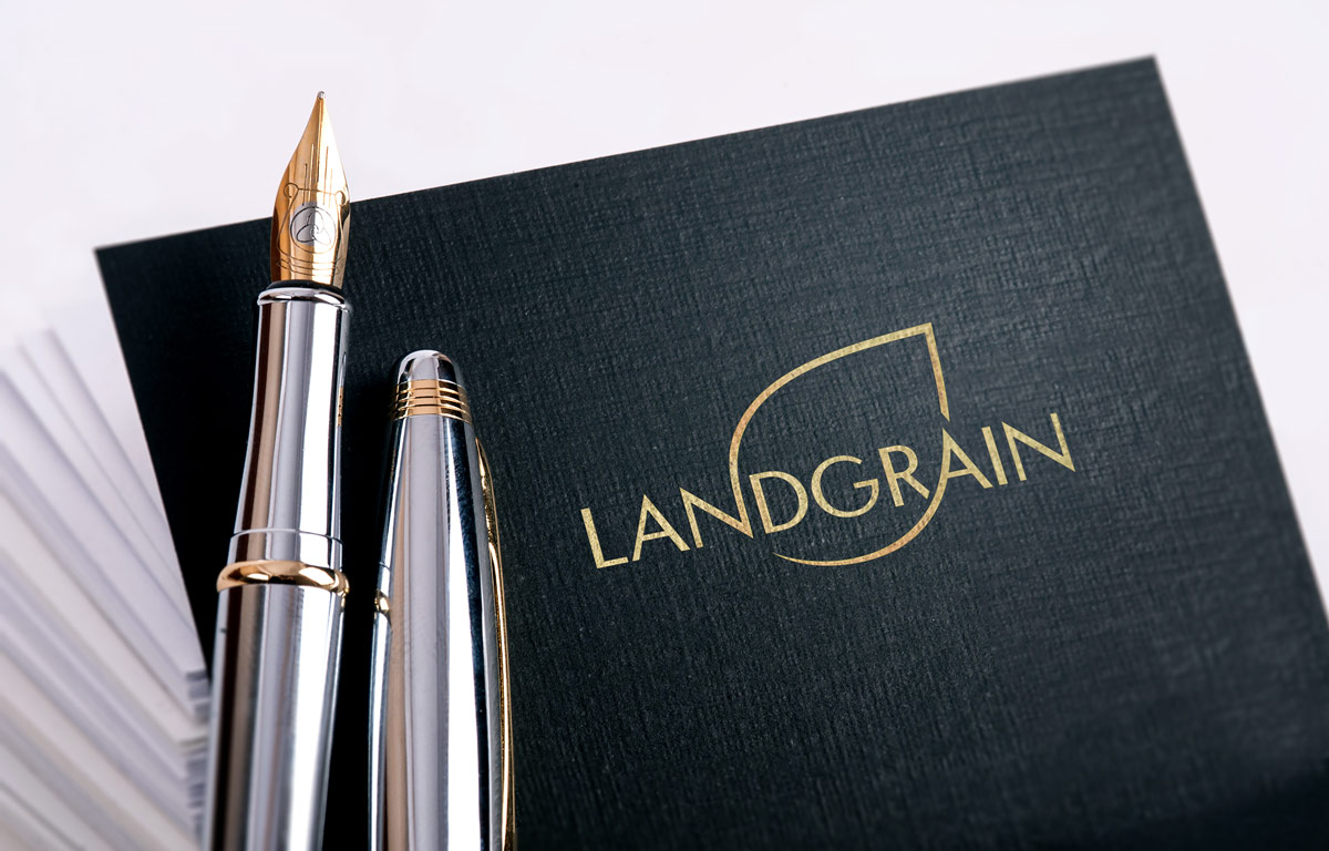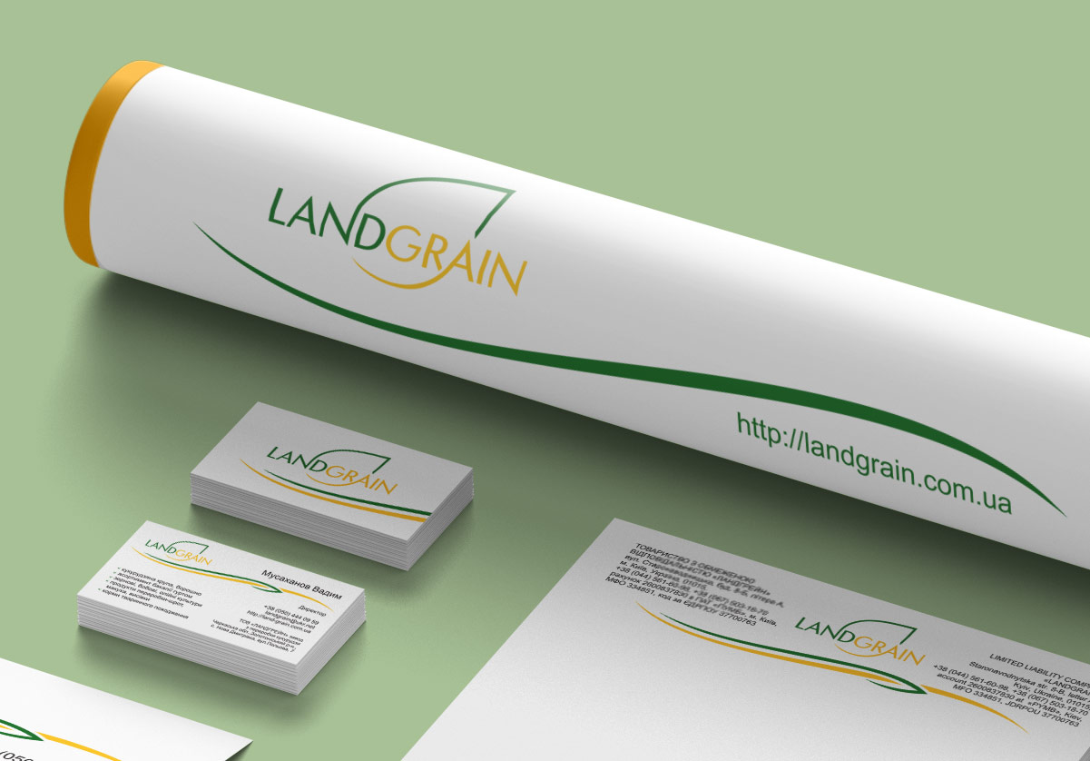 Шрифтове написання назви “LANDGRAIN” у логотипі розроблено дизайнерами нашої студії та адаптовано під загальний стиль бренду.