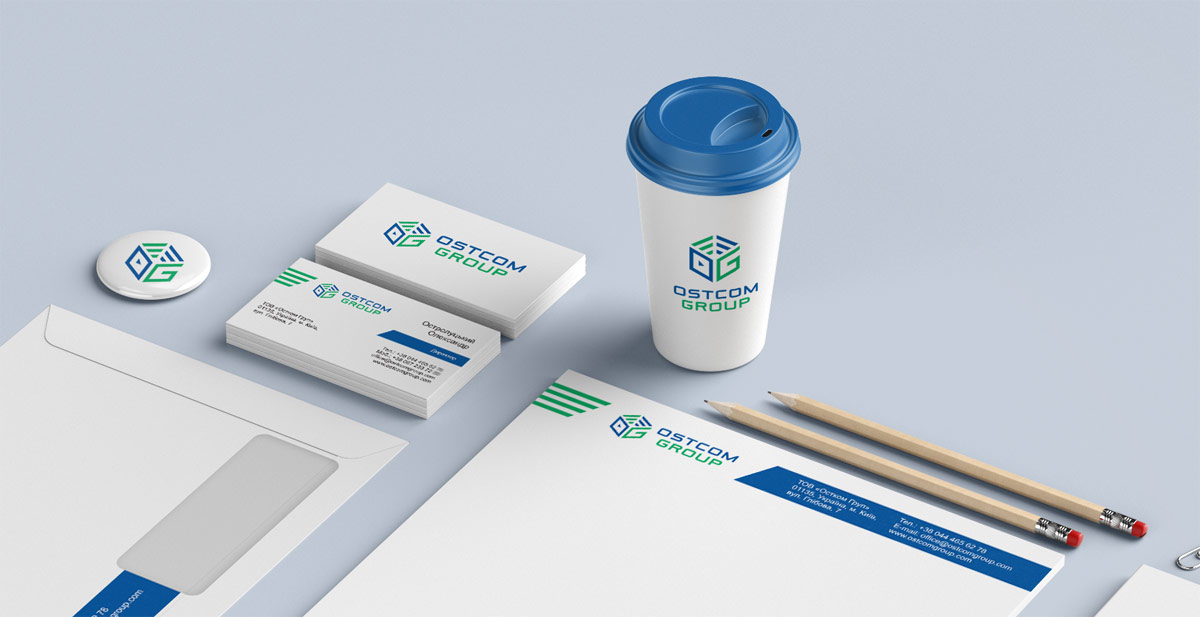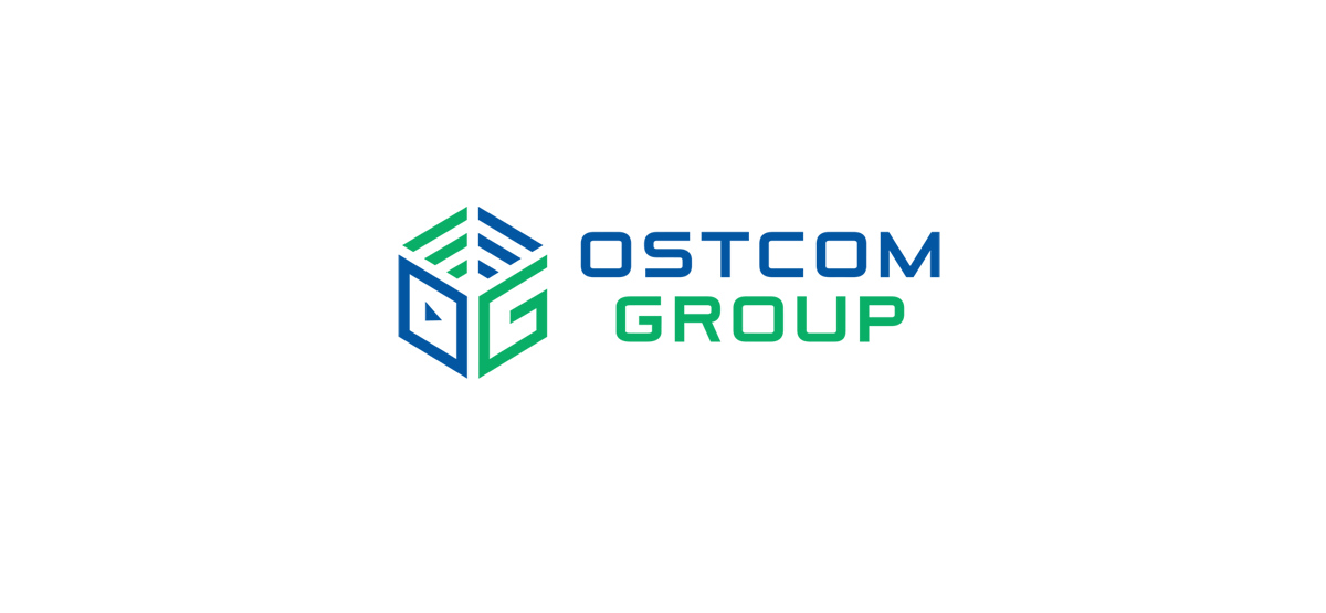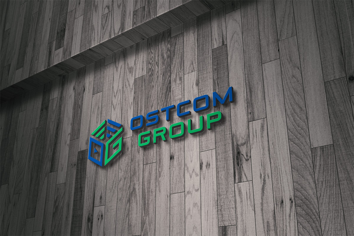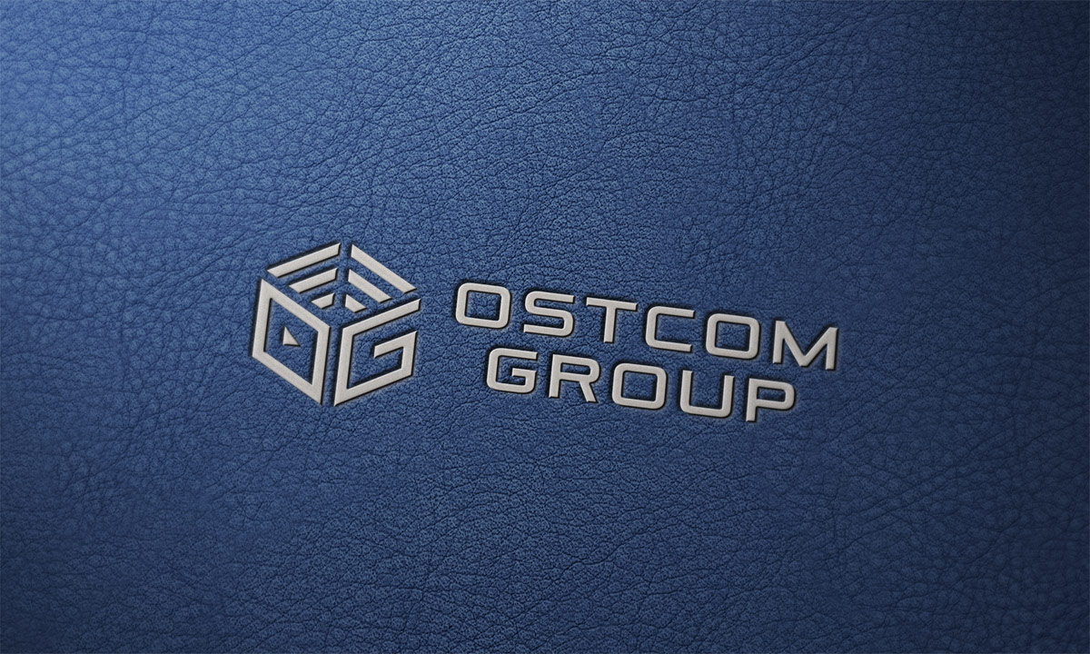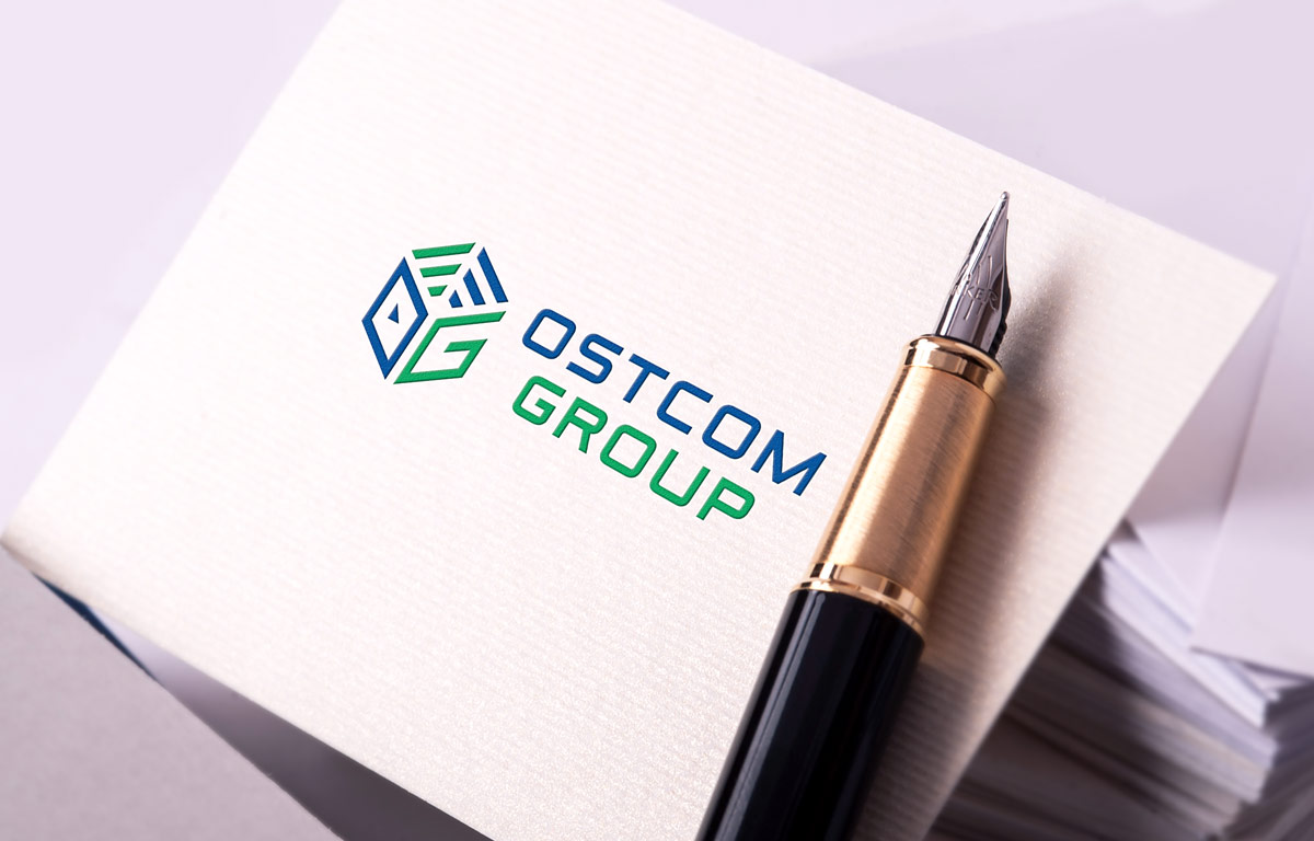 Шрифтове написання назви “OSTCOM GROUP” розроблено дизайнерами нашої студії та виконане у строгому стилі.