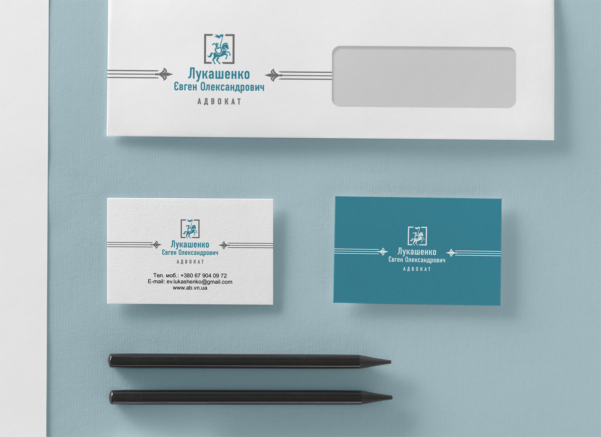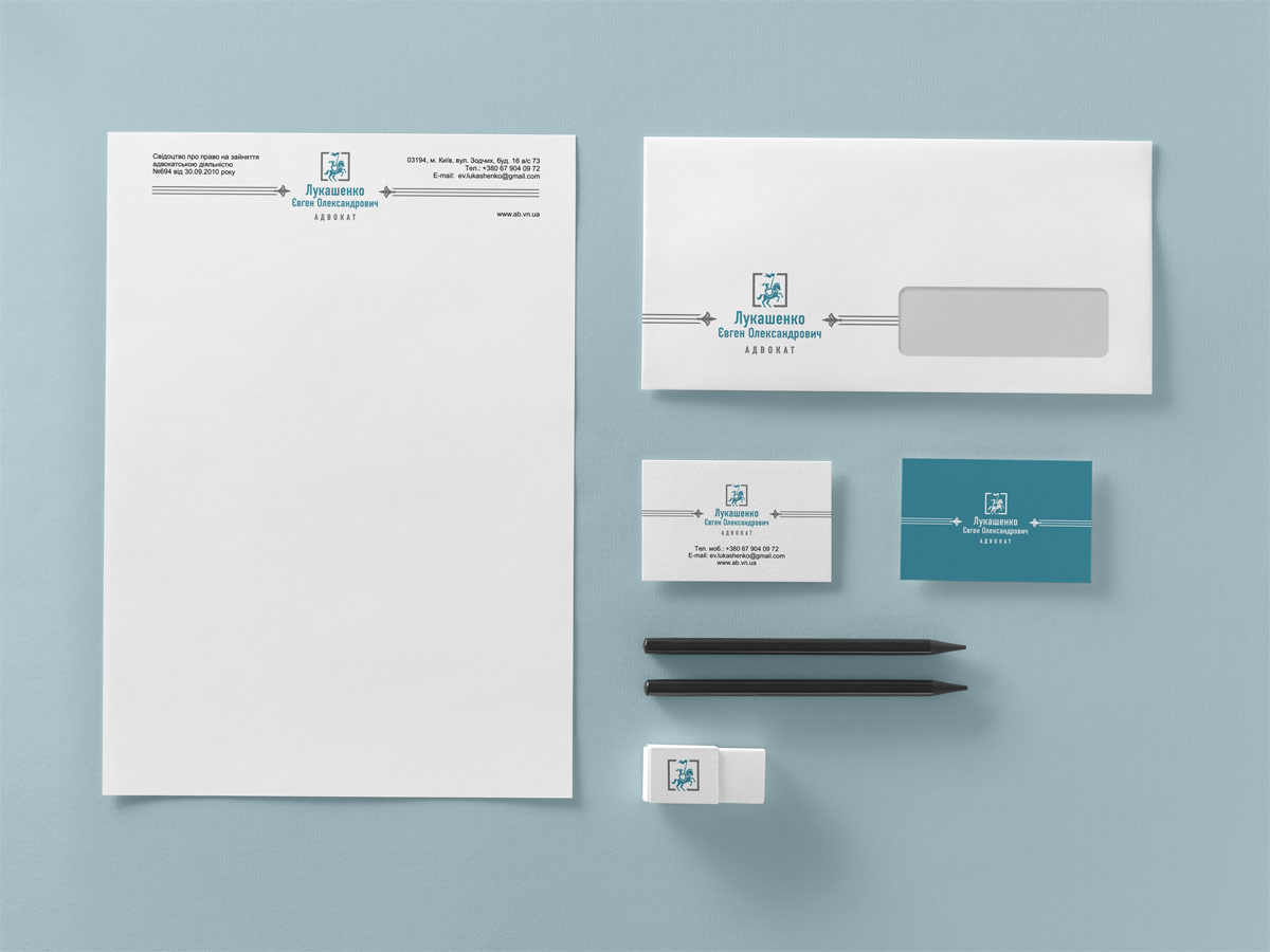 Особливу увагу хочеться приділити фірмовому стилю, який дизайнери студії пропрацювали досить ретельно. В рамках замовлення було розроблено стандартний набір документів: візитні картки, конверти, фірмовий бланк. Розроблений фірмовий стиль із елементами горизонтальних ліній у вигляді геральдичної (королівської) лілії підкреслює високий рівень послуг адвоката та добре доповнює загальний образ логотипу.