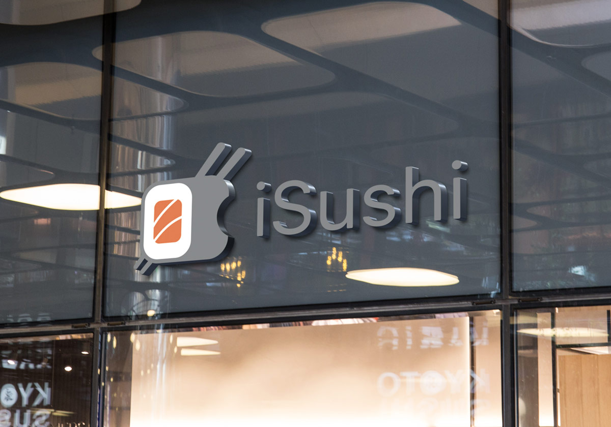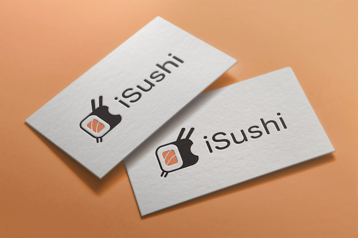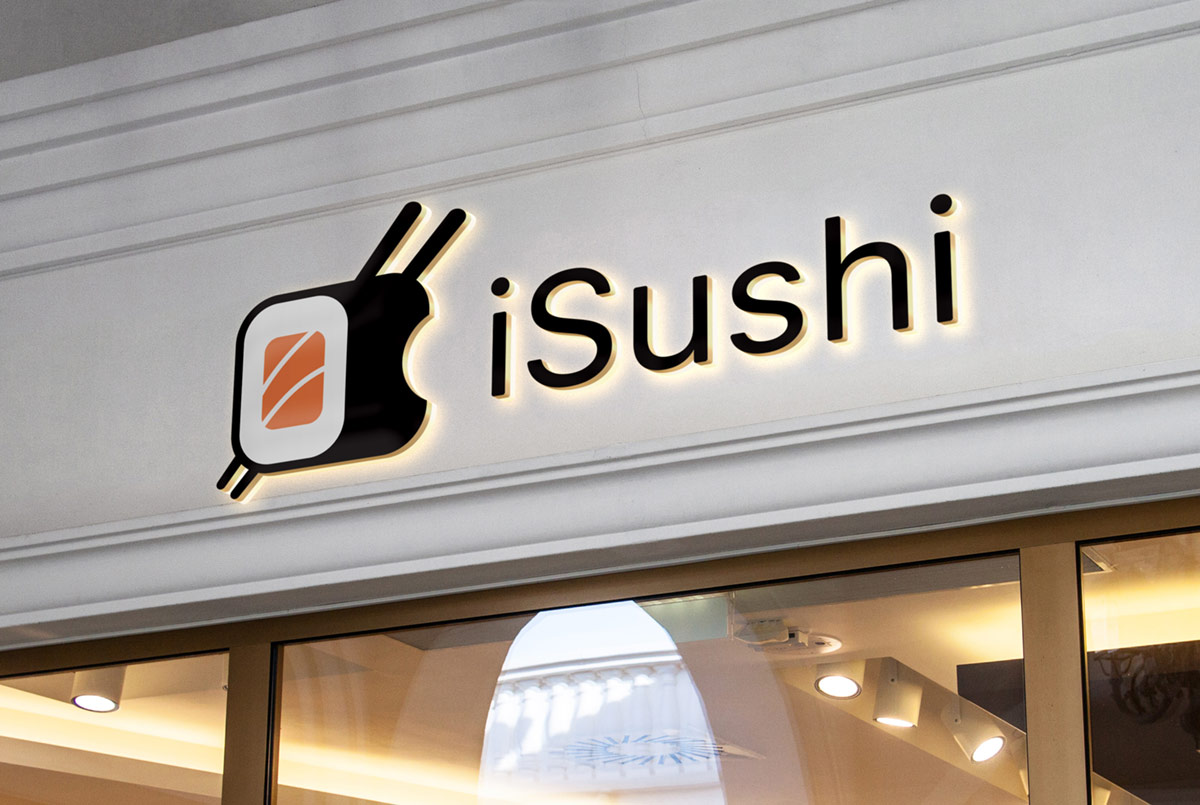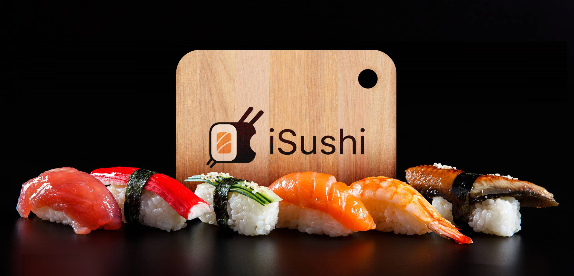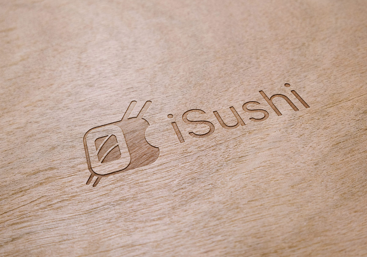 Шрифтове написання назви ”iSushi” у логотипі розроблено дизайнерами нашої студії та адаптовано під загальний стиль бренду.