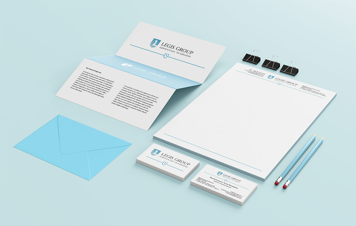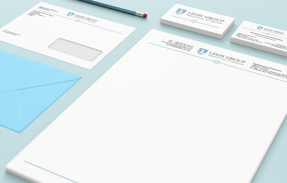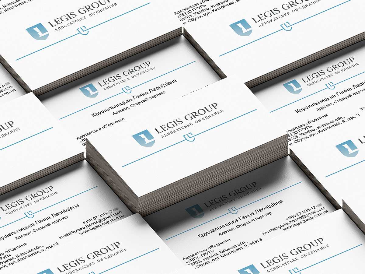 Шрифтове написання назви “LEGIS GROUP” у логотипі розроблено дизайнерами нашої студії та адаптовано під загальний стиль бренду. Для розшифрування діяльності було прийнято використовувати у логотипі дескриптор “Адвокатське об’єднання”.