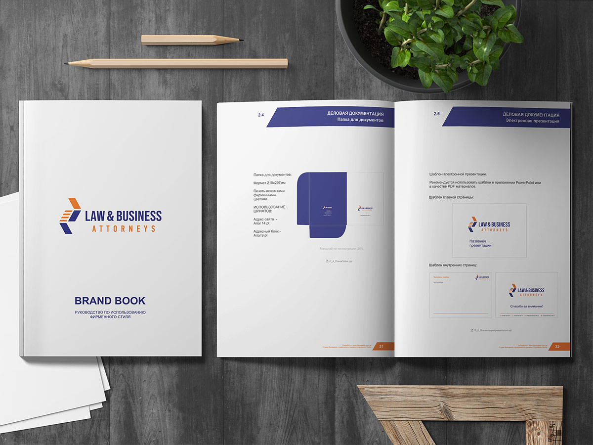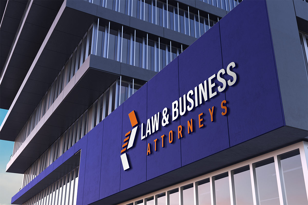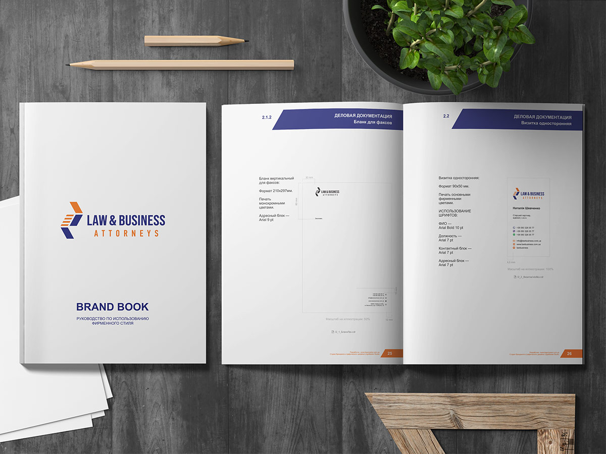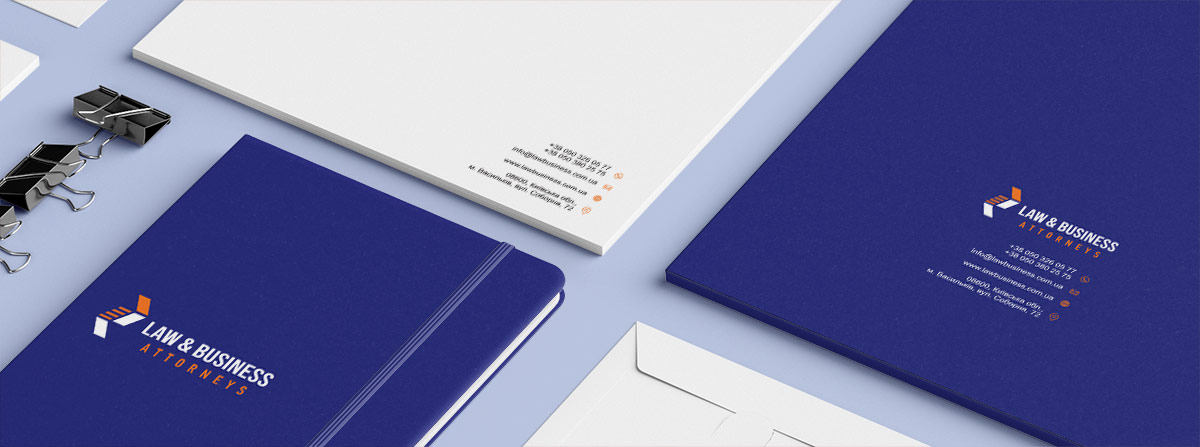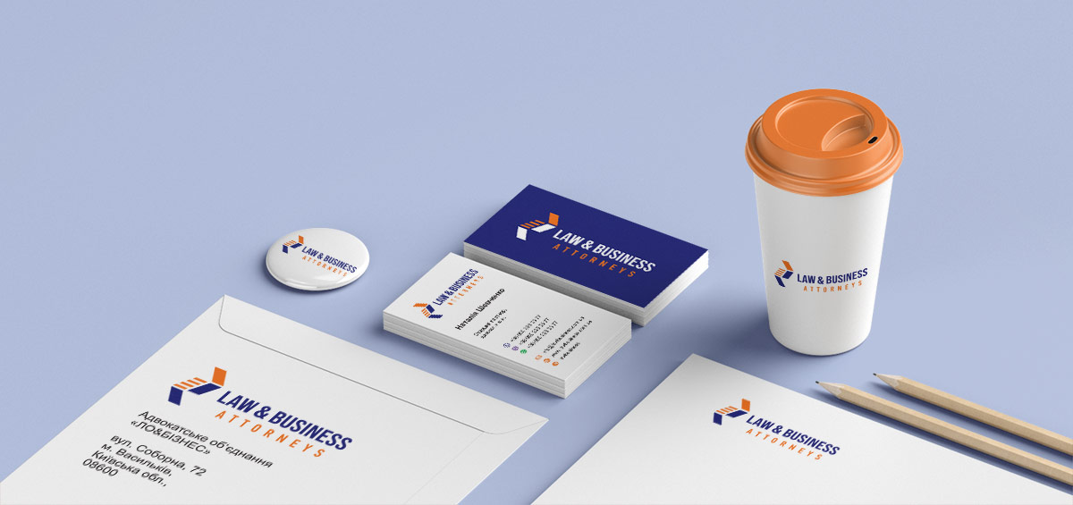 Шрифтове написання назви “LAW & BUSINESS” у логотипі розроблено дизайнерами нашої студії та адаптовано під загальний стиль бренду. Для розшифровки діяльності було використано в логотипі дескриптор “ATTORNEYS”.