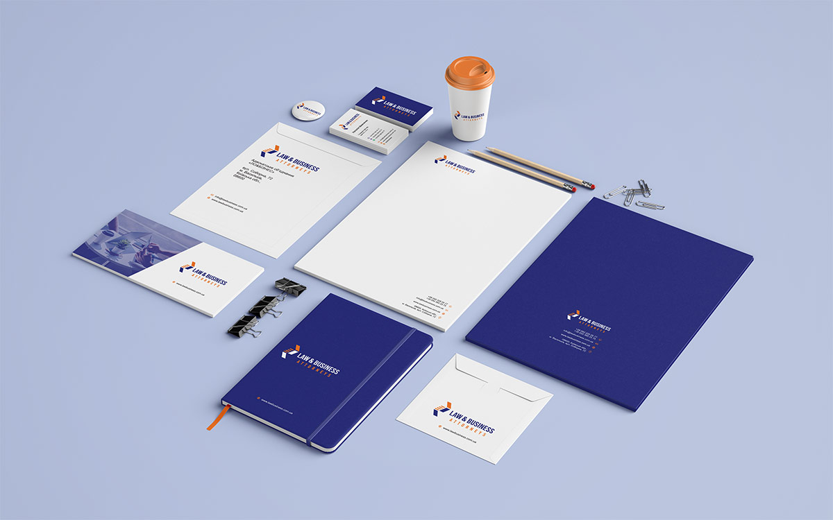 Особливу увагу хочеться приділити фірмовому стилю, який дизайнери студії пропрацювали досить ретельно. В рамках замовлення розроблено стандартний набір документів: візитні картки, конверти, фірмовий бланк, папка. Розроблений фірмовий стиль наголошує на юридичній сфері діяльності.