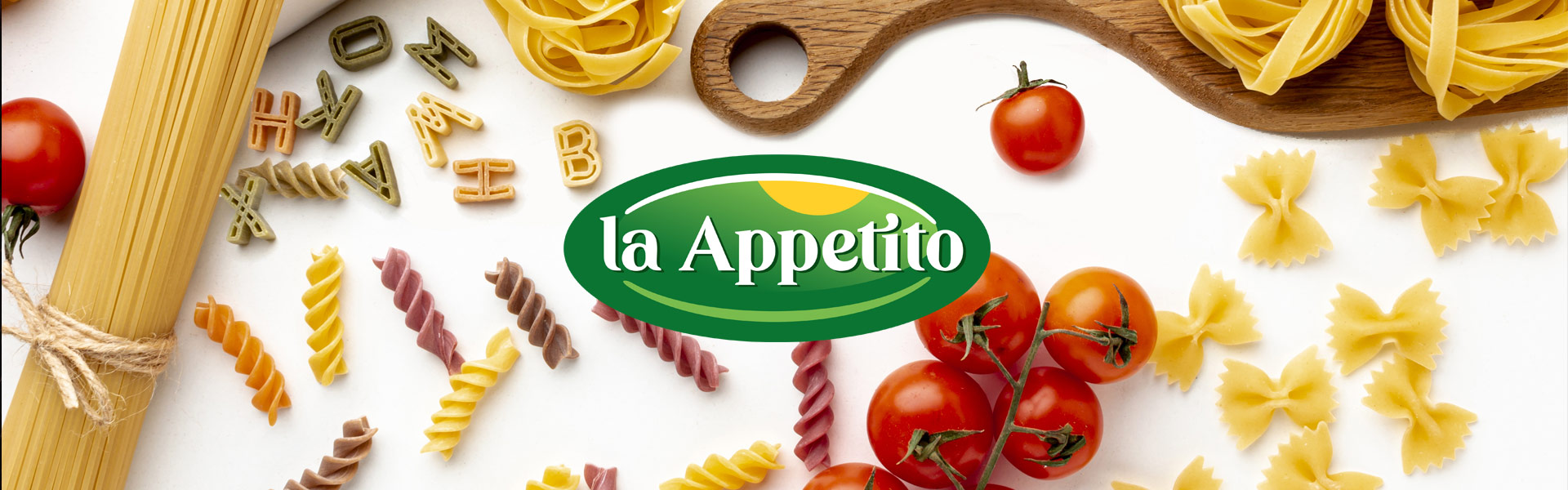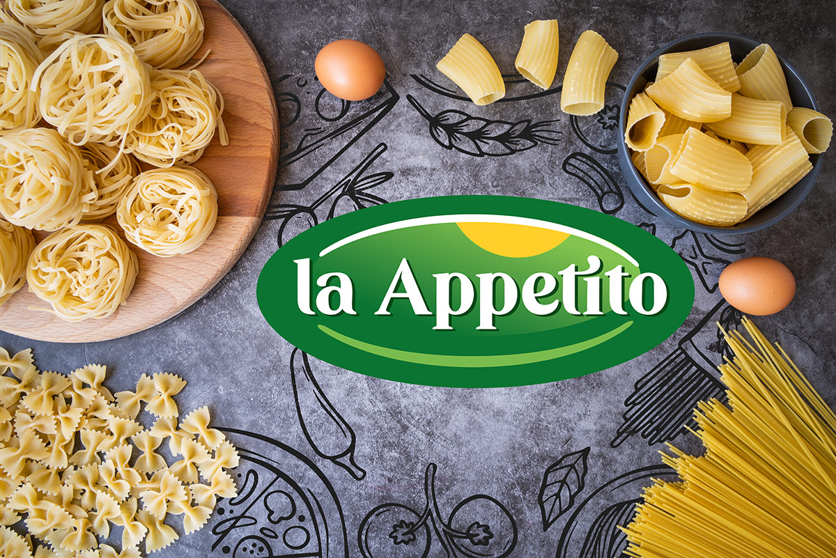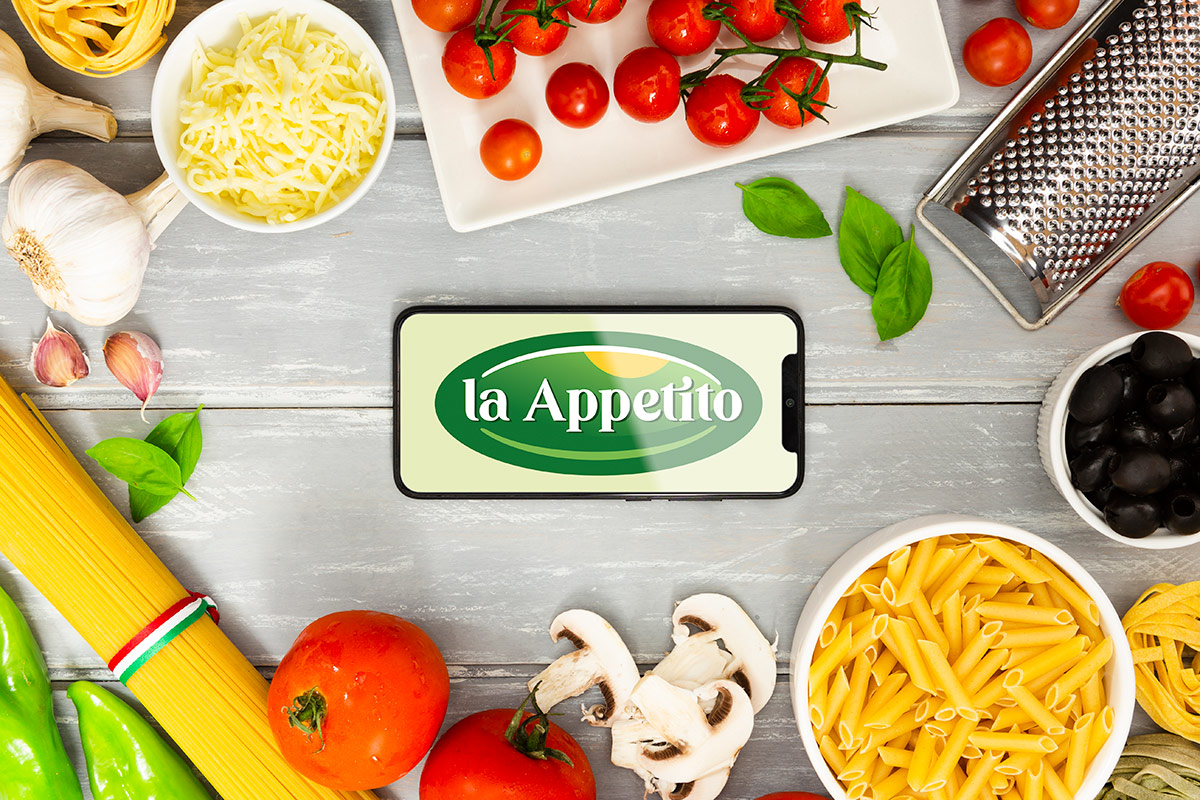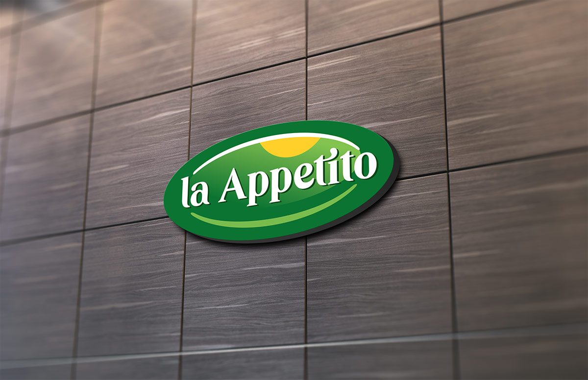Шрифтове написання назви “la Appetito” у логотипі розроблено дизайнерами нашої студії та адаптовано під загальний стиль бренду.