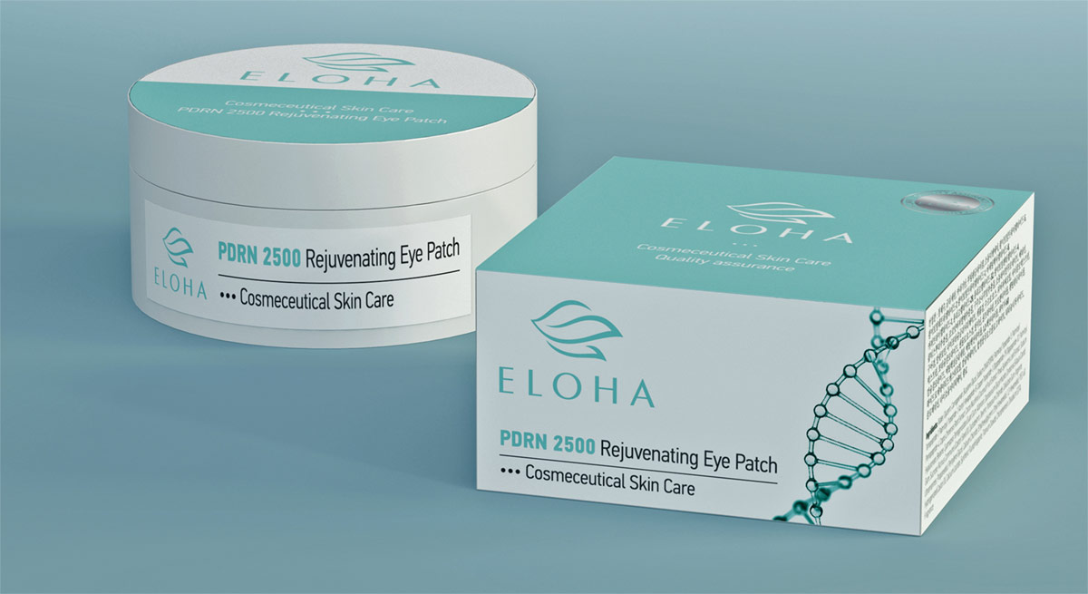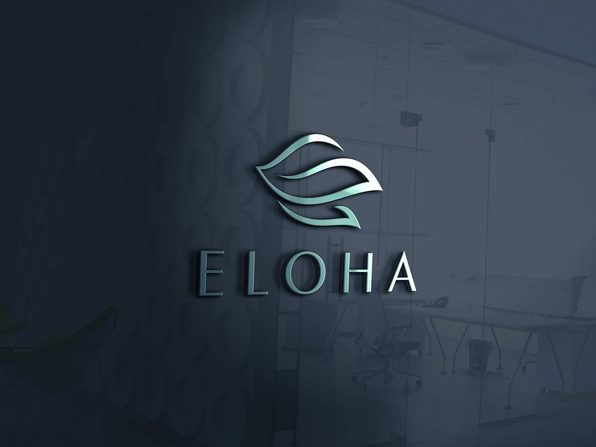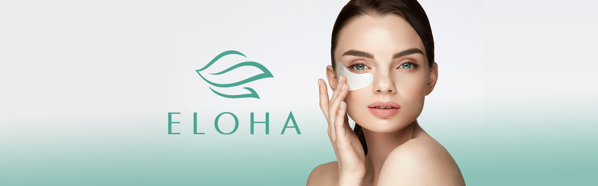 Логотип складається з назви торгової марки “ELOHA” та знака у вигляді стилізації листочка та ока – патчі під очі. Листок відображає натуральність продукції.